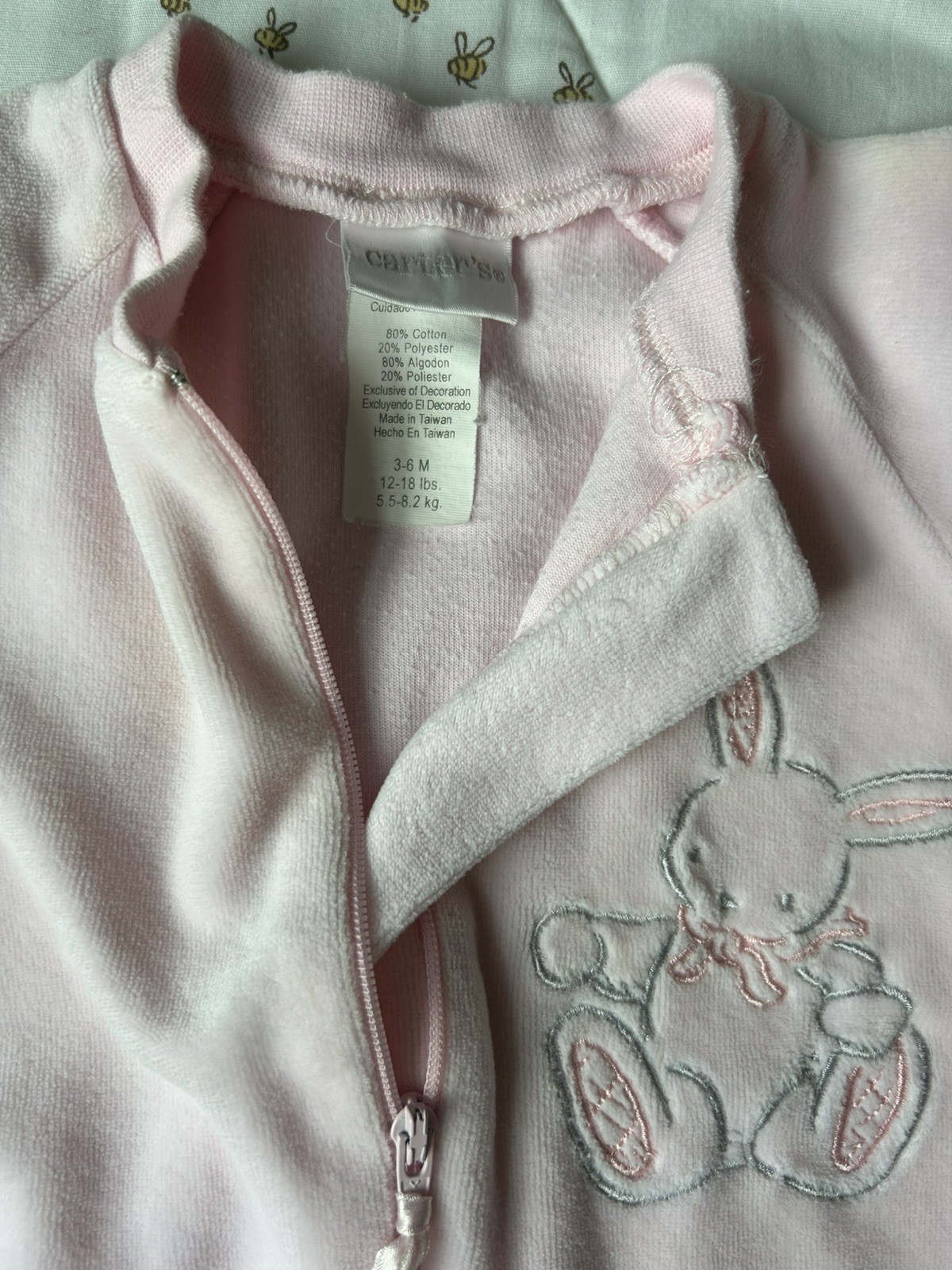 как выглядит Vintage Carters Velour Sleeper - Pink with Bunny - Med 3-6 months фото
