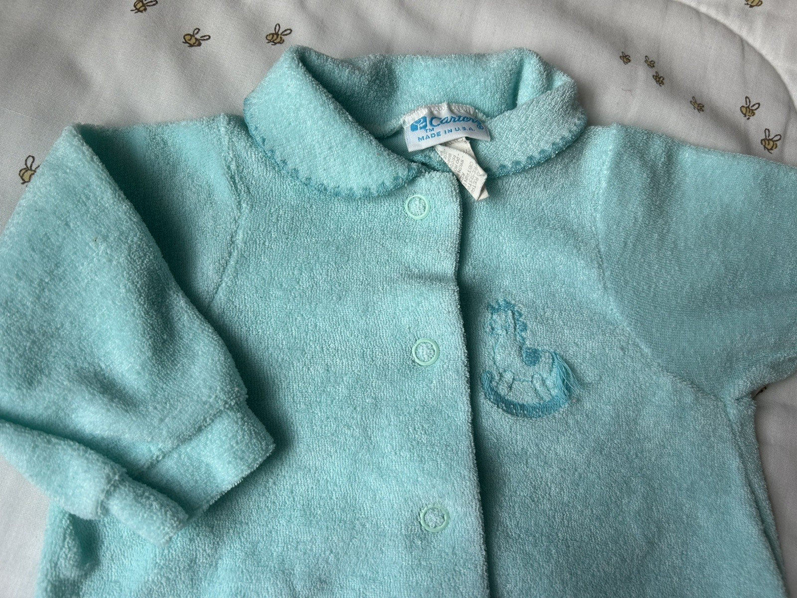как выглядит Vintage Carters Teal Blue Terry Sleeper and Bunny One Piece - Med 3-6 months фото