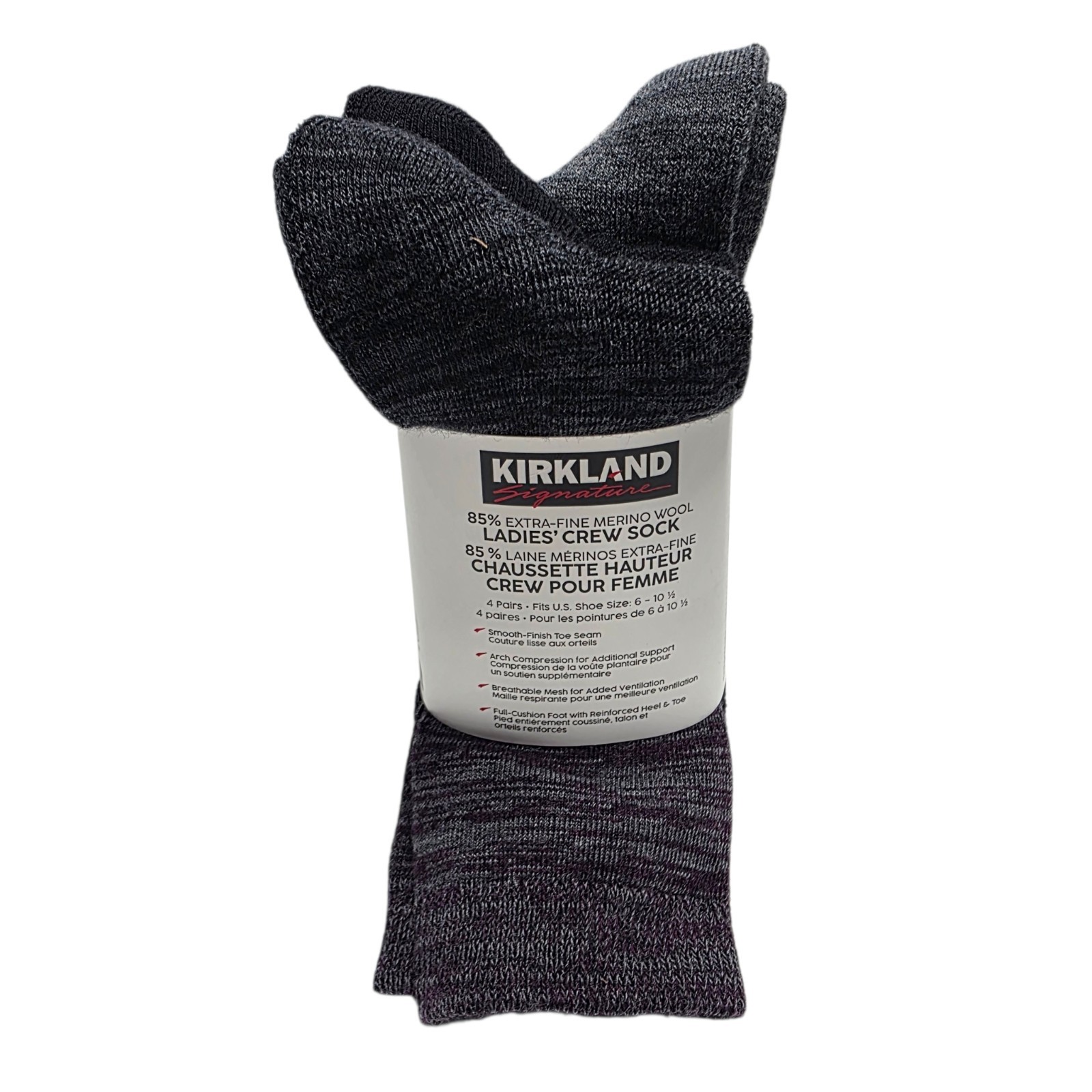 4 Pairs Kirkland Signature Women Ladies Extra Fine Merino Wool Blend Crew Socks