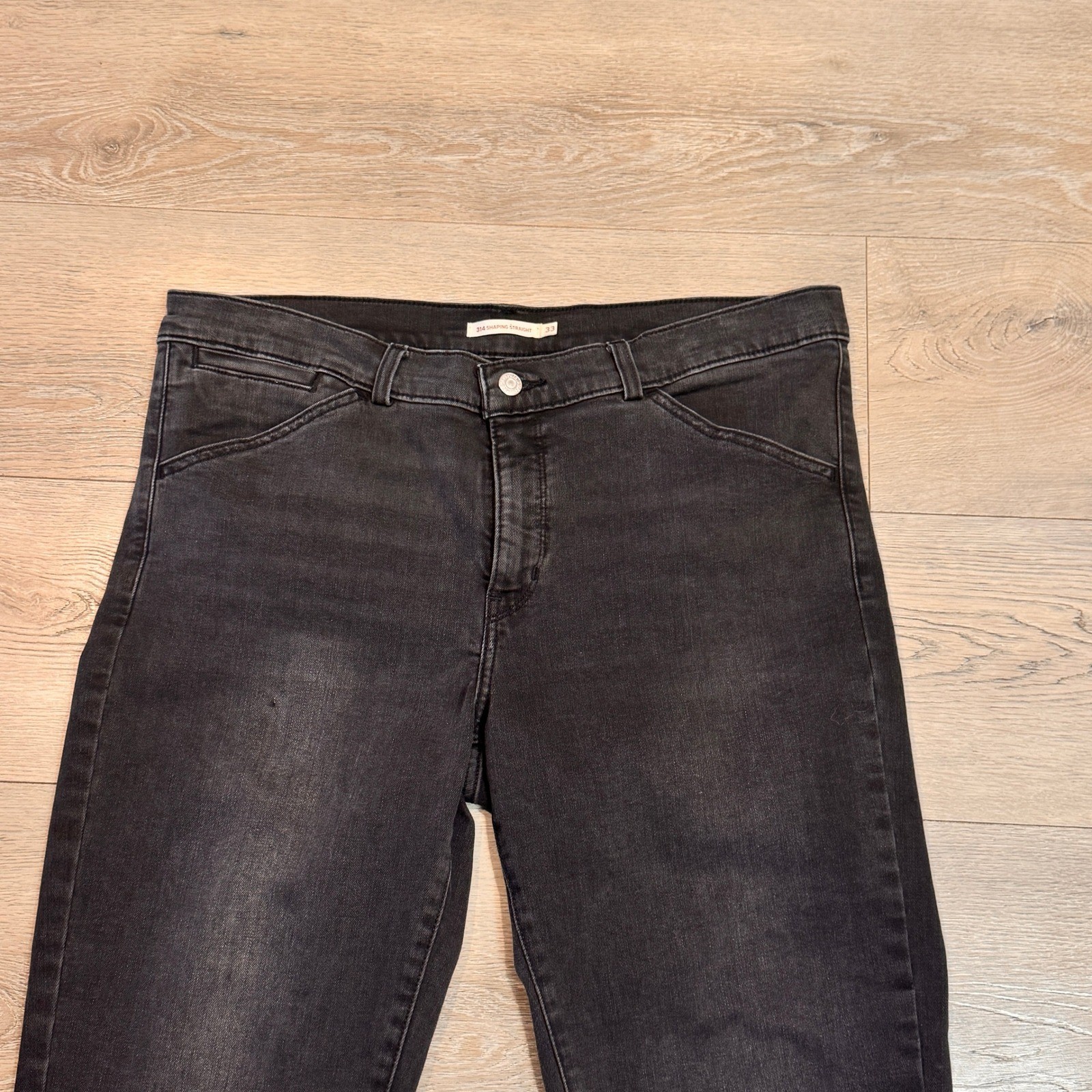 Levi's 314 Shaping Straight Jeans Black Dark Wash Trouser Denim Size 33 Regular