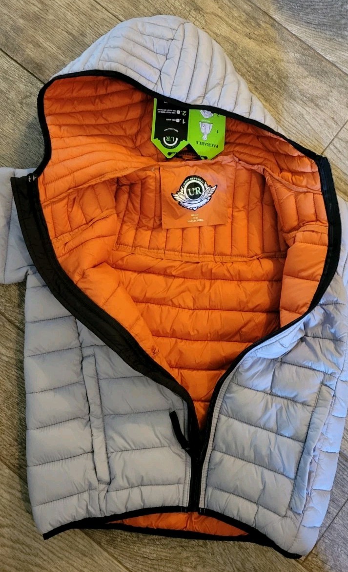 как выглядит Urban Republic Boys Packable Puffer Jacket Medium 10/12 Gray Outdoor NWT фото