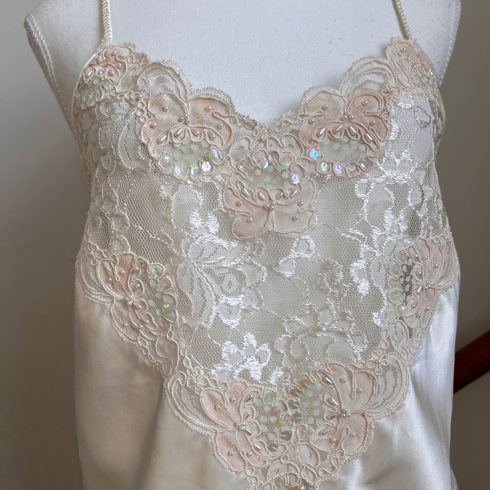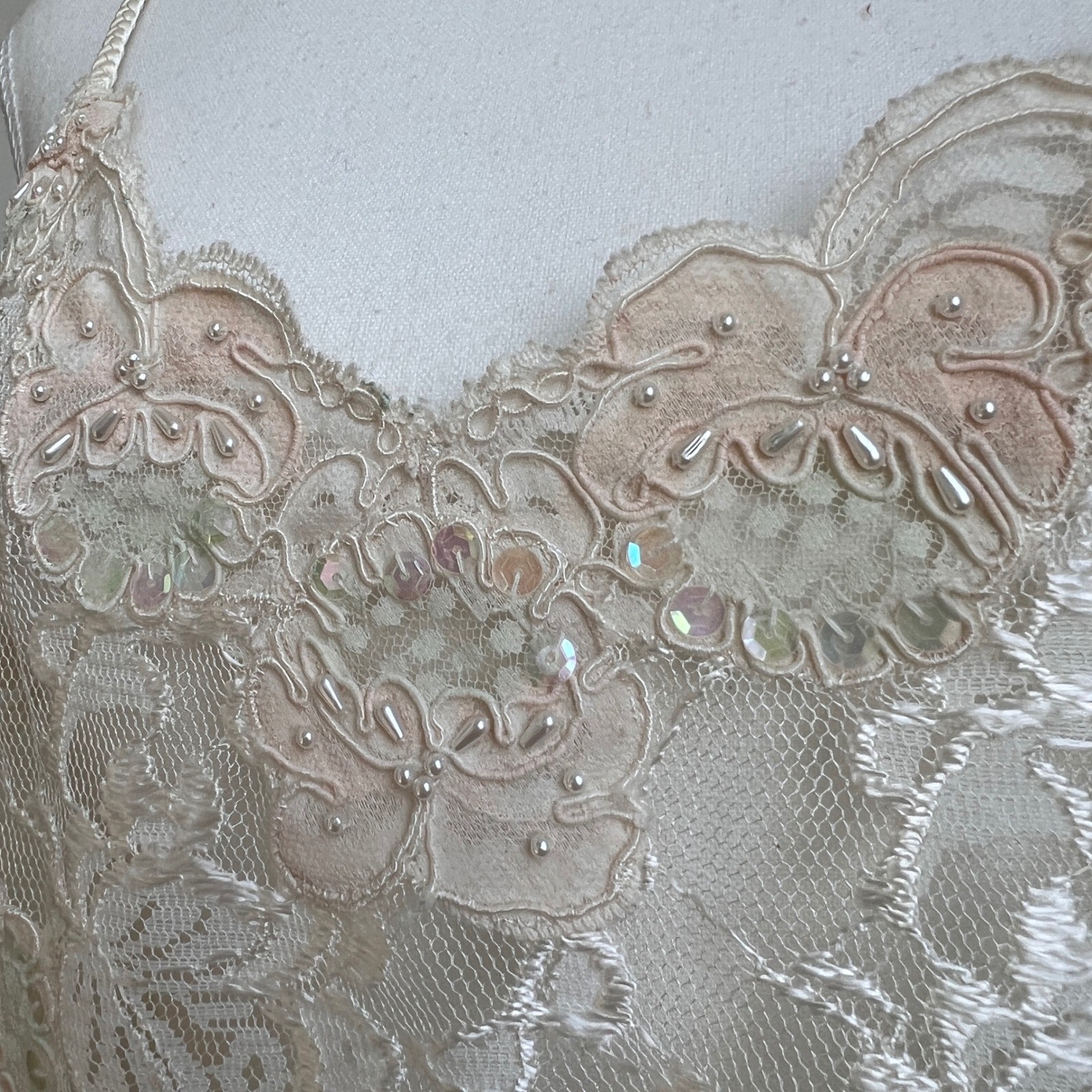 Vintage Victoria's Secret Camisole Ivory Lace Sequin Beaded Satin Cami Top 80s