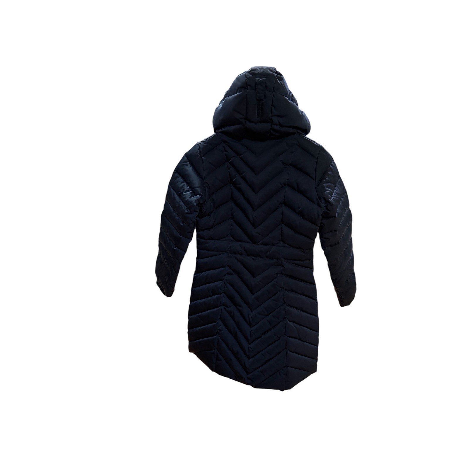 Lands End Kids Navy Blue Down Puffer Parka Jacket Hooded Chevron Quilt Size L 14