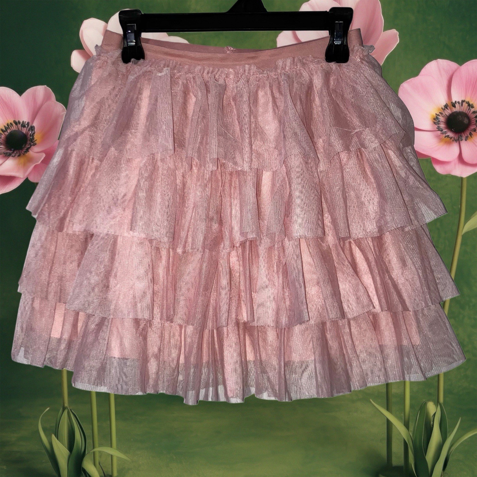 Wonder Nation Pink Mesh Tiered Ruffle Tutu Dance Skirt Cotton Lined Ballet Sz 8