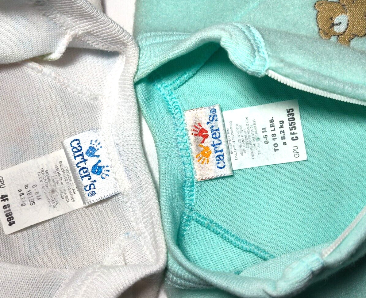 Vtg Carter's Fleece Baby Sleepers 0 6 Mos Up To 18lbs White Green Cat Dog Bear