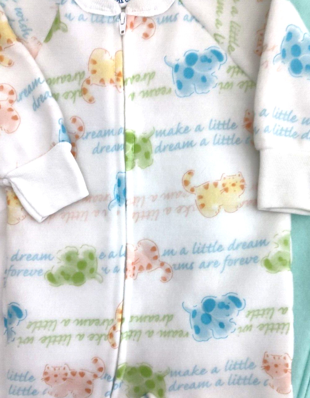 как выглядит Vtg Carters Fleece Baby Sleepers 0 6 Mos Up To 18lbs White Green Cat Dog Bear фото
