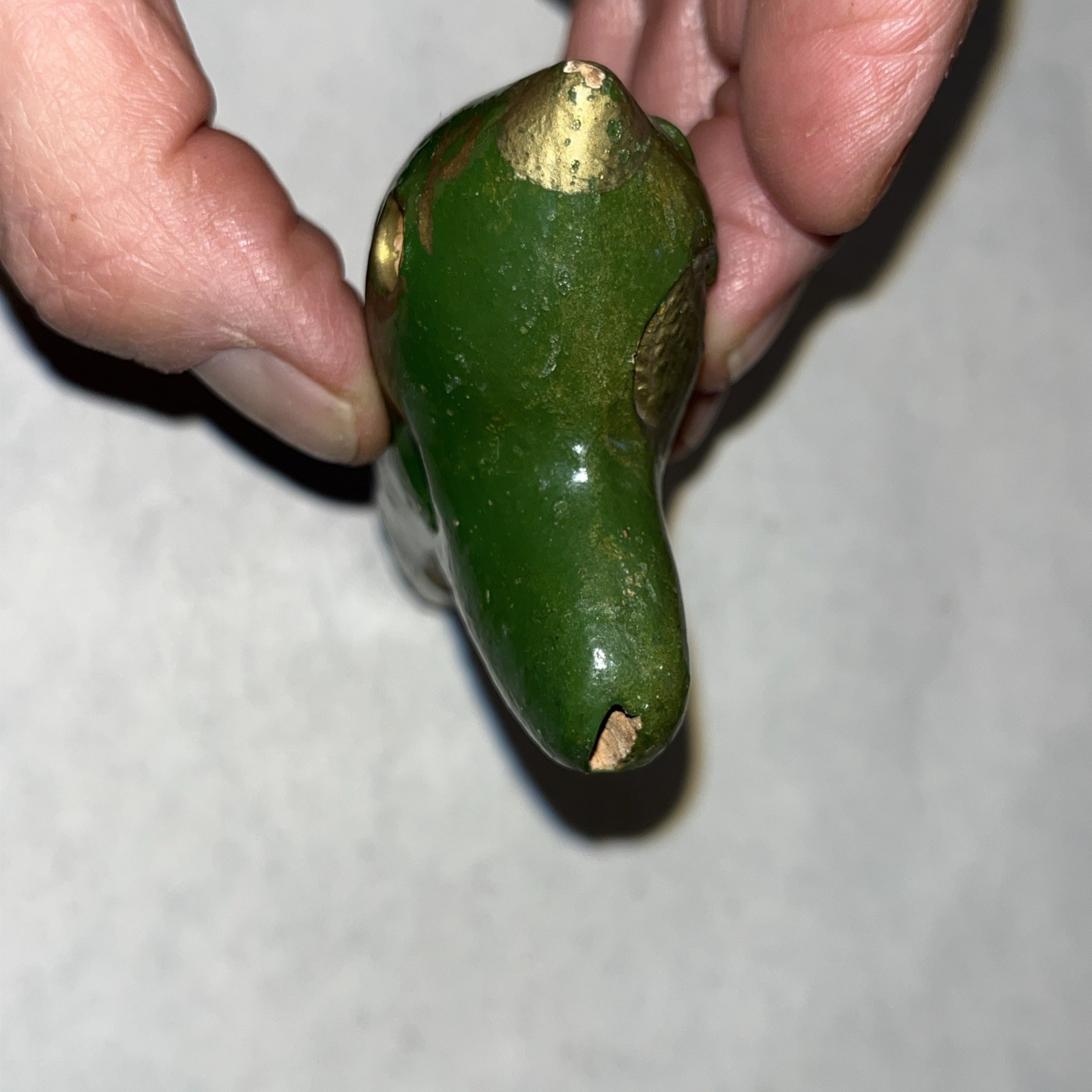 как выглядит H. FIEHN Ocarina B2 Germany Green Antique Gold Hand Painted Clay Flute 4.5 фото