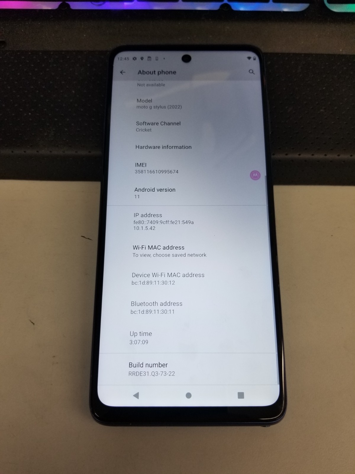 Moto G Stylus 128GB Twilight Blue Cricket LK Battery Health 99 Acceptable