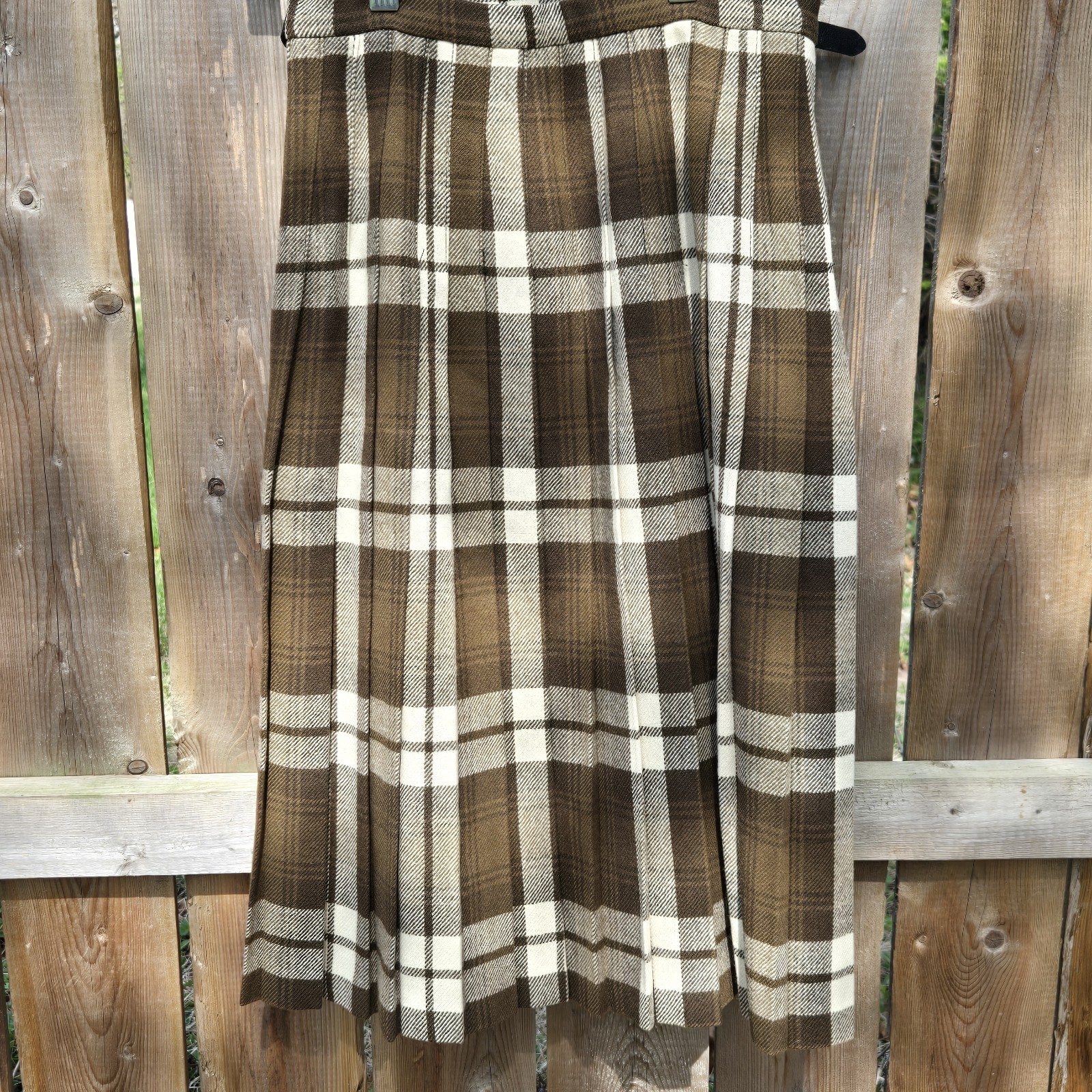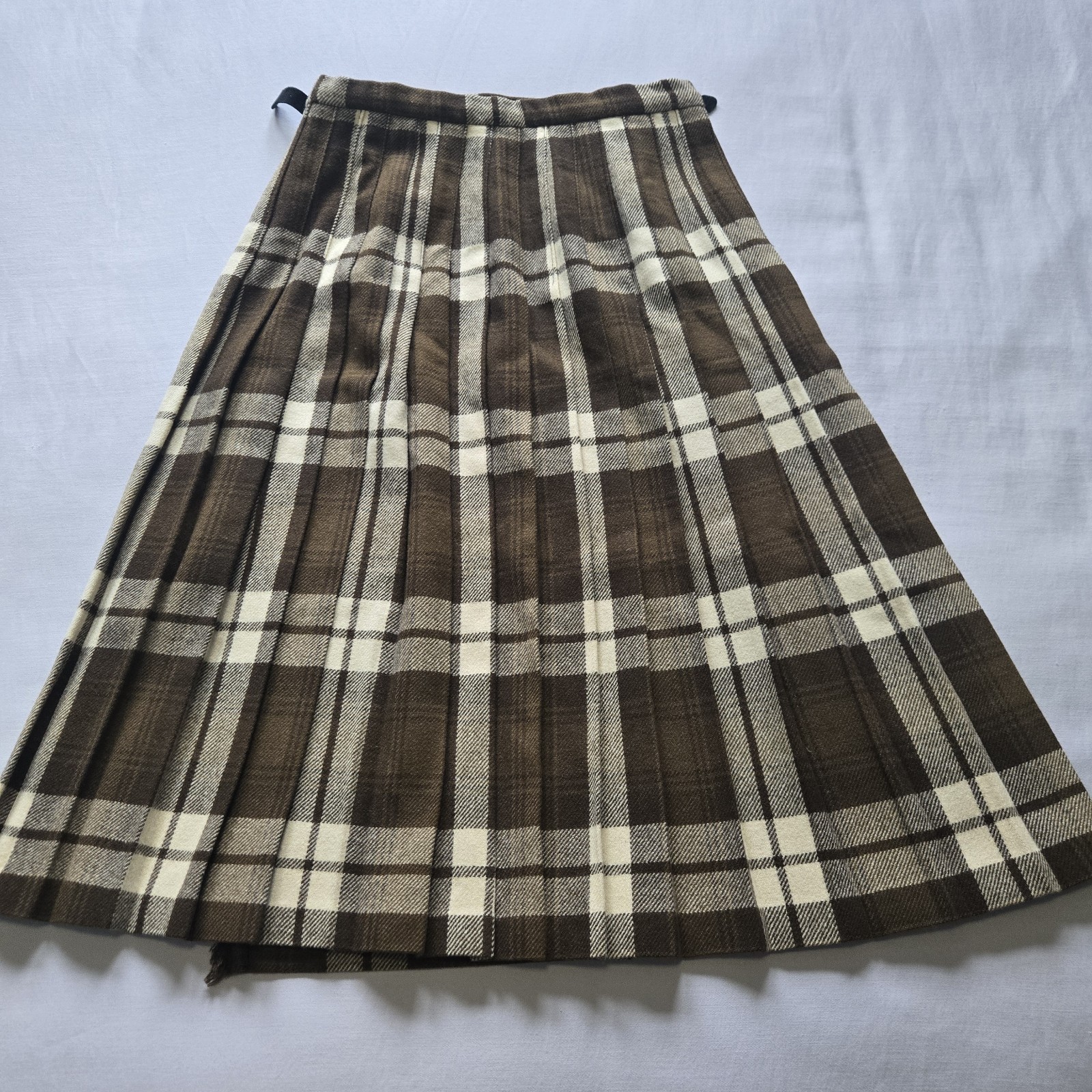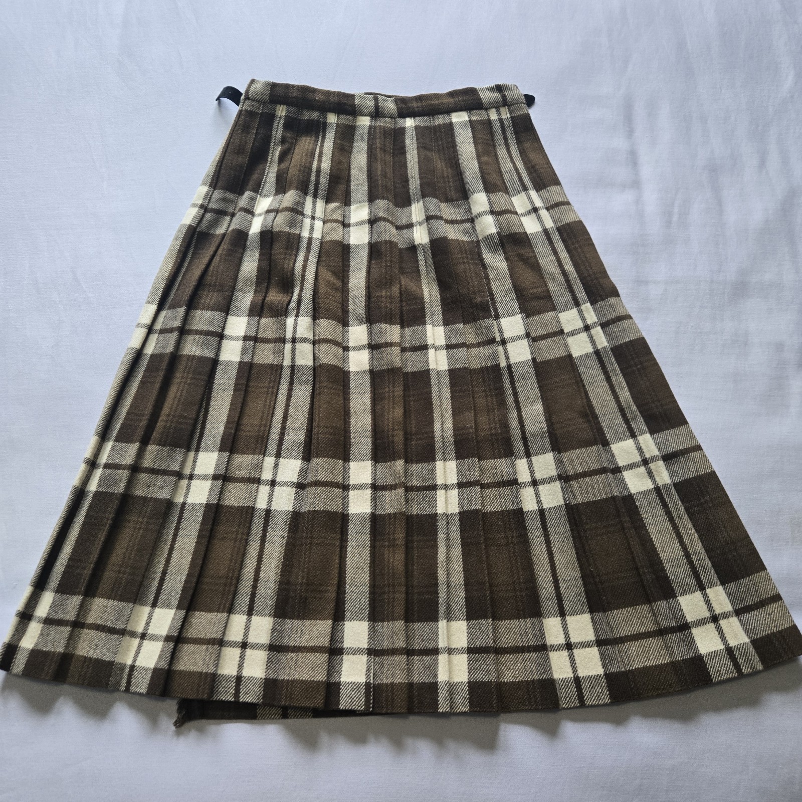 Vtg Laird-Portch of Scotland Kilt Skirt Tartan Plaid Pure New Wool Brown Read
