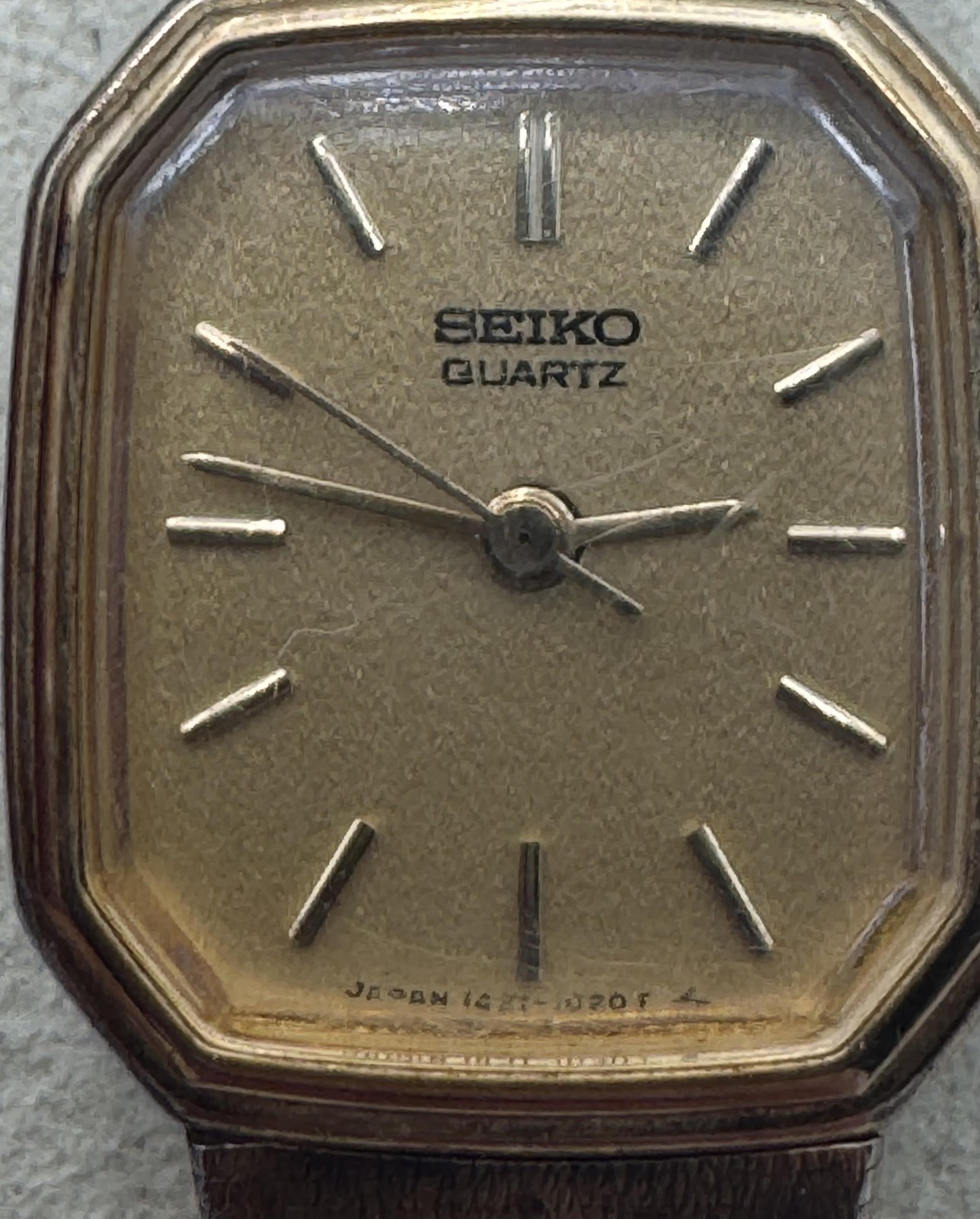 Vintage Seiko Quartz Watch Womens Gold Dial Gold Tone Bracelet 1421-5619