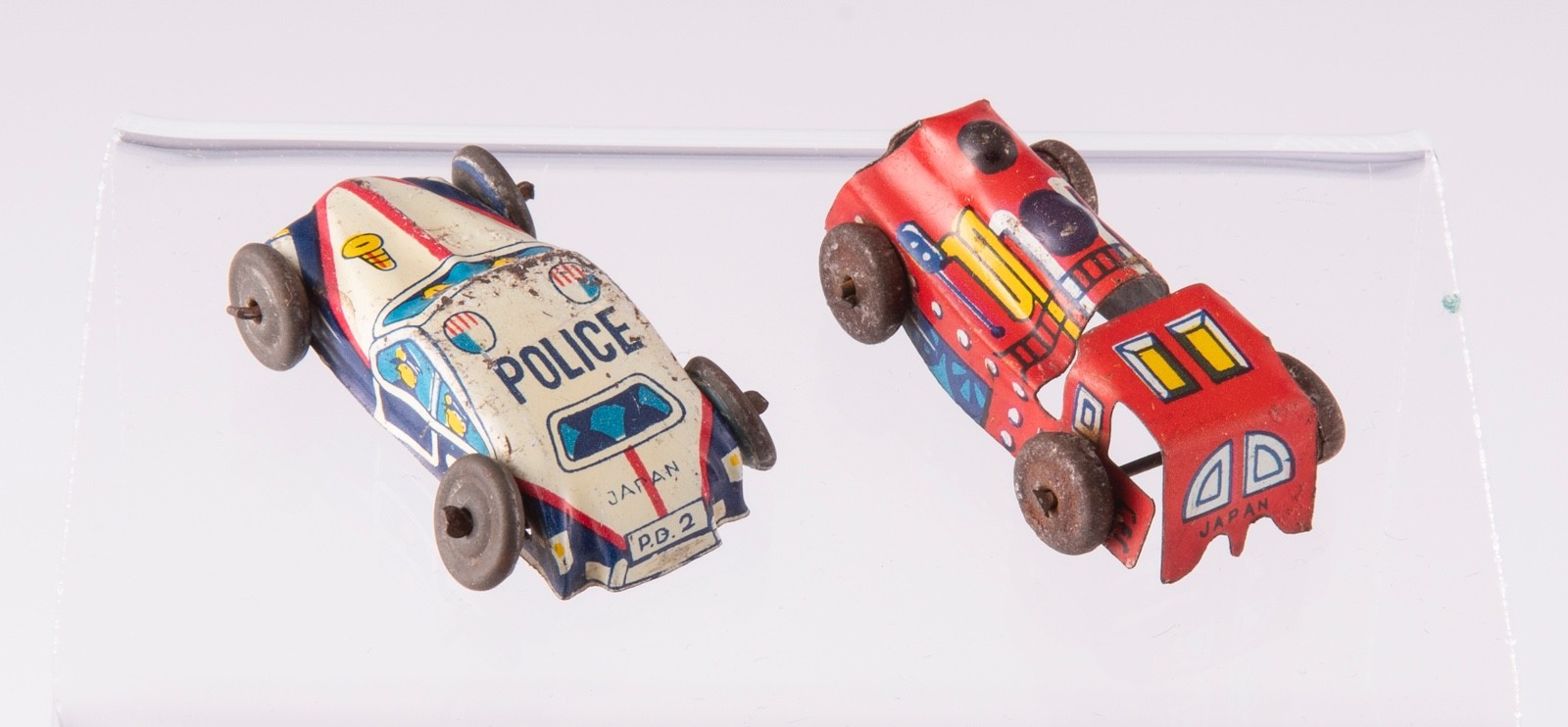Vintage Miniature Tin Litho Toy Police Car & Train Japan: Vintage Miniature Tin Litho Toy Police Car & Train Japan