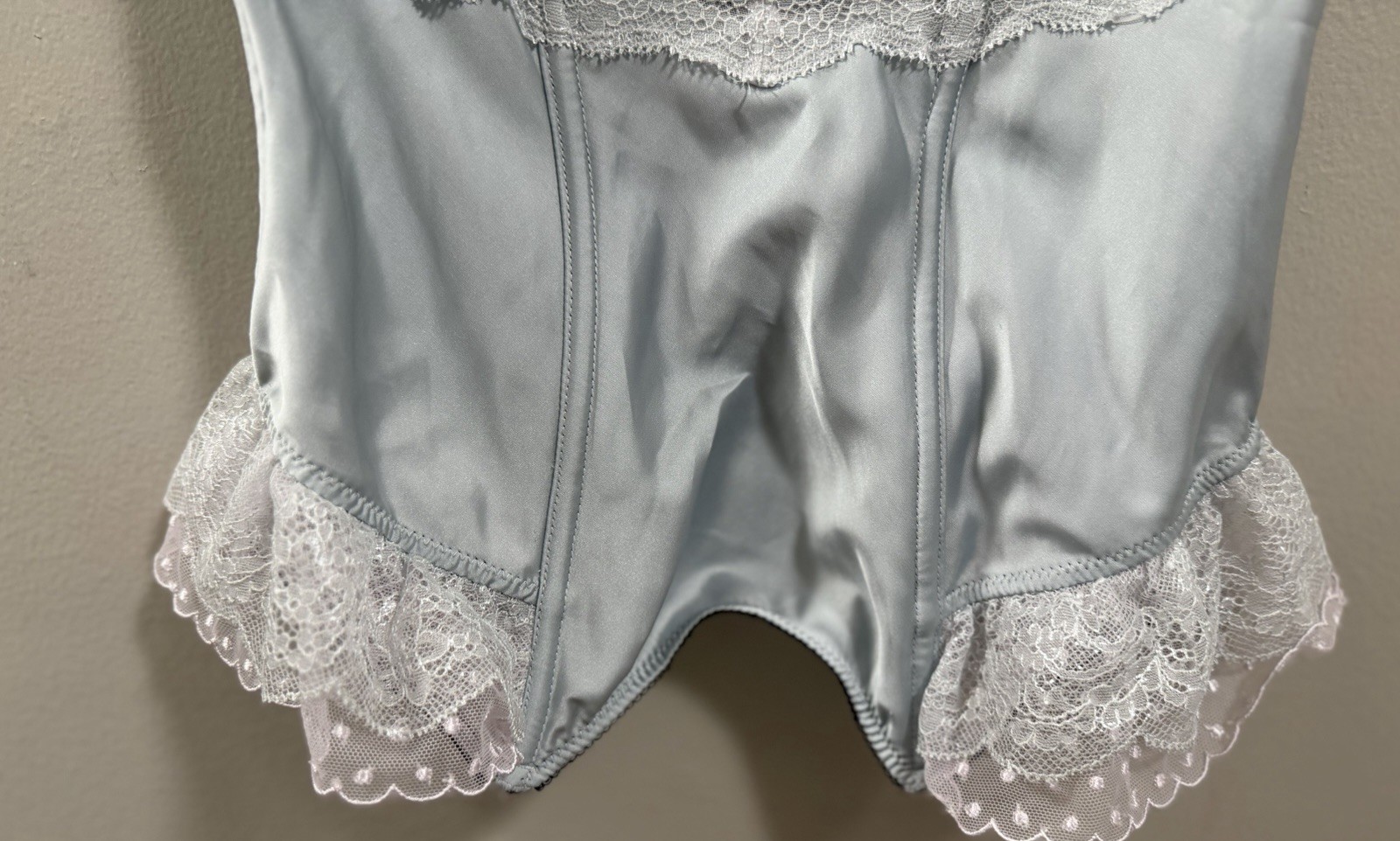 Victoria s Secret Satin Lace Blue 34B Bustier Corset Top. Underwire Side Zip