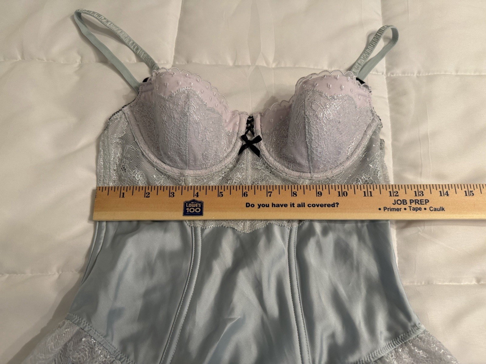как выглядит Victoria s Secret Satin Lace Blue 34B Bustier Corset Top. Underwire Side Zip фото