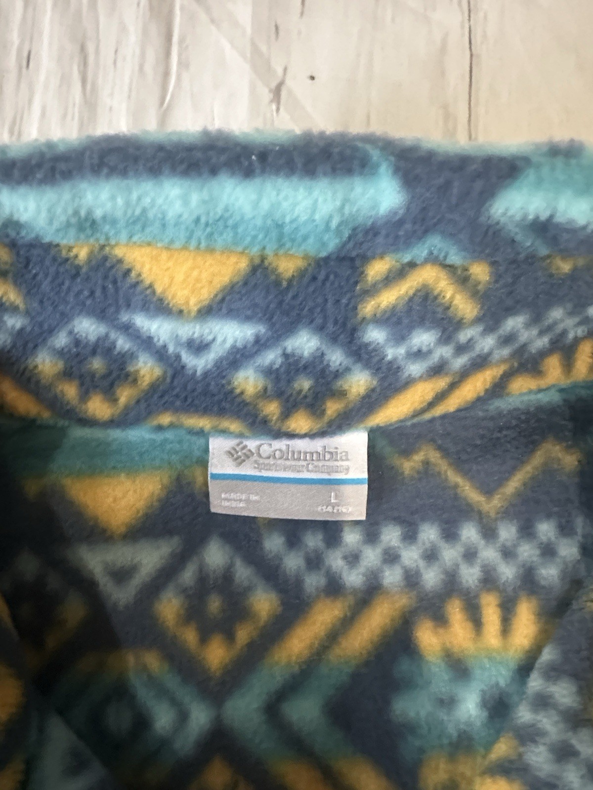 Columbia girls Geometric Pattern Full Zip Fleece Jacket Blue Yellow Size L 12/14