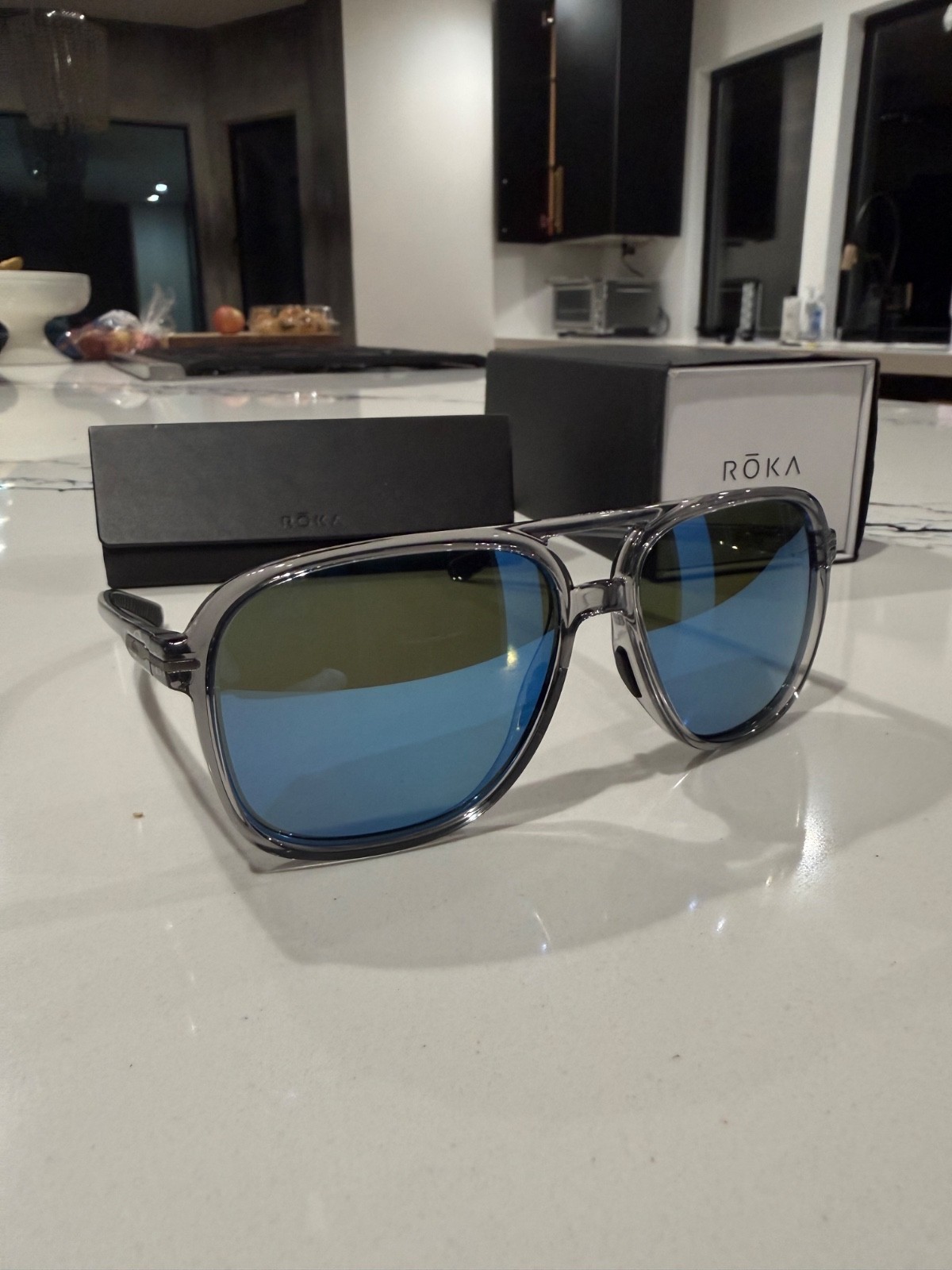 как выглядит Roka Bandera Sunglasses Crystal Grey Frame Glacier Mirror Polarized Lens фото