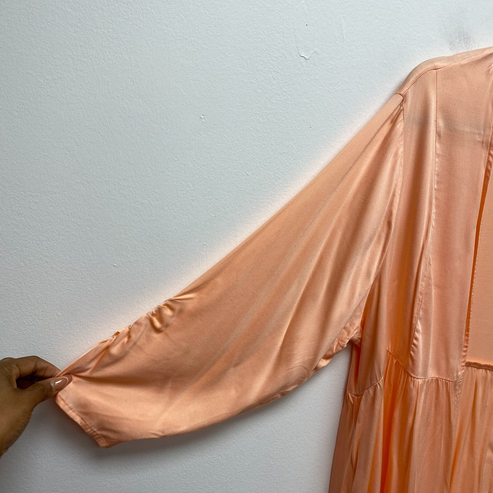 как выглядит Torrid Womens Peach Stella Ruched Long Sleeve Ruffled Hem Open Front Kimono 2X фото