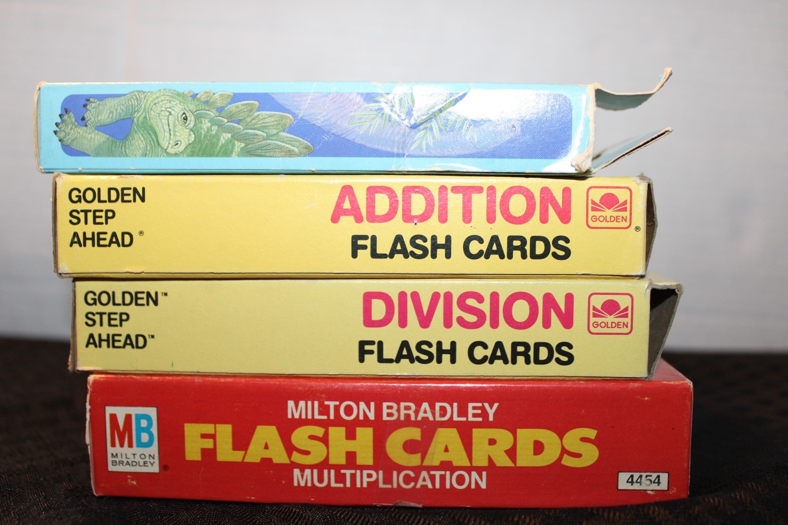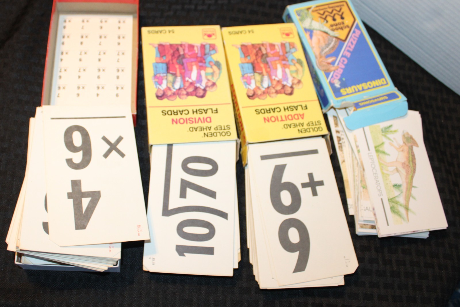 Lot of 4 Flash Cards: Mathematics: Addition, Division, Multiplication; Dinosaurs