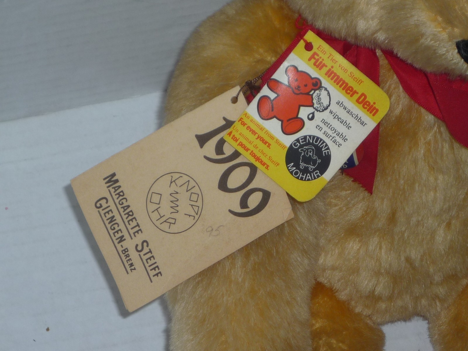 как выглядит VINTAGE 1980S STEIFF 1909 REPLICA TEDDY BEAR GROWLER BUTTON TAGS PIN 0165/38 фото