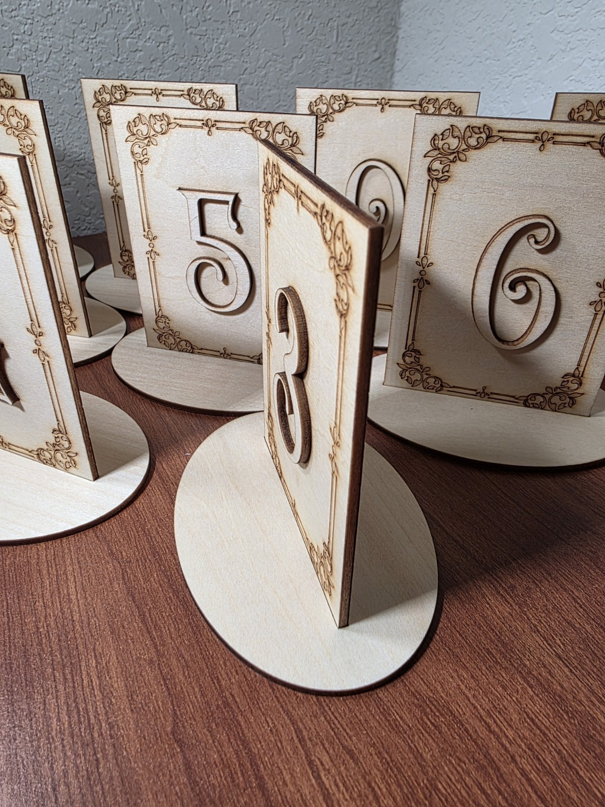 10 Rustic Wooden Table Numbers 1-10 Set Removable Base Party