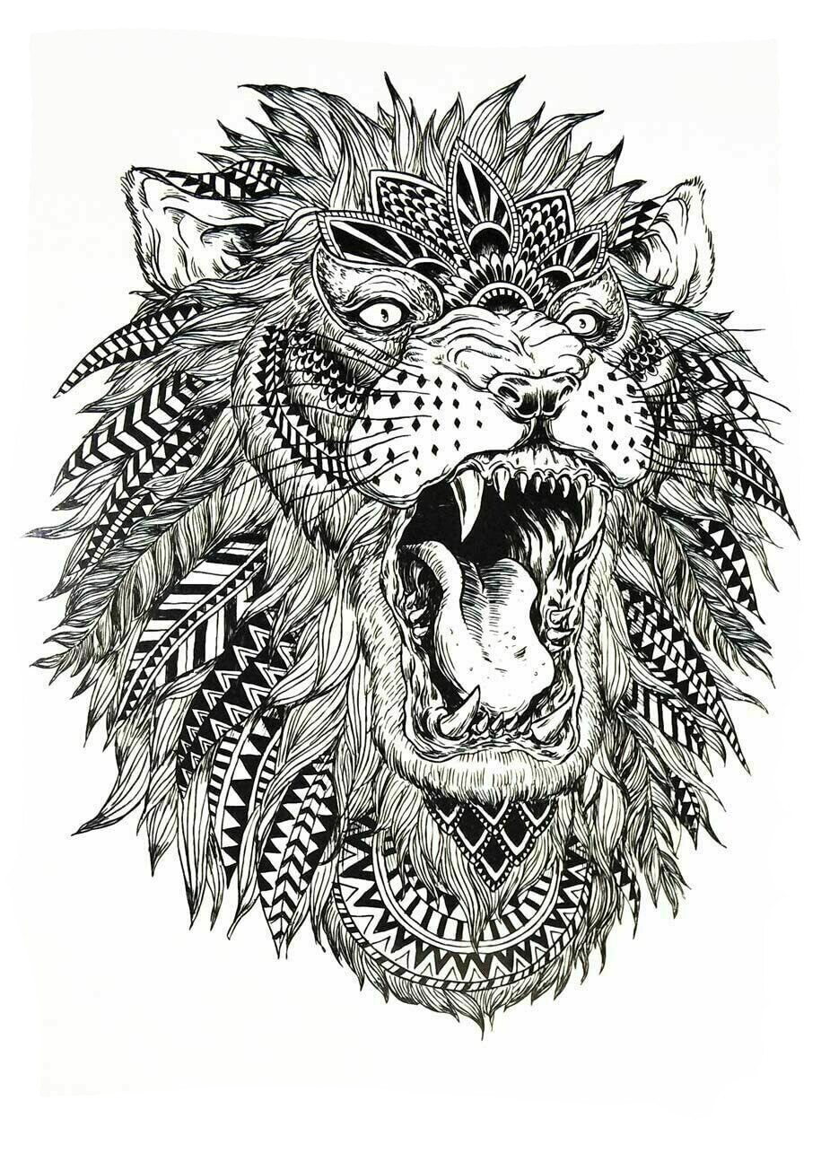 6 pcs Temporary Tattoo Stickers Waterproof Arm Leg Chest Body Art Dragon Lion