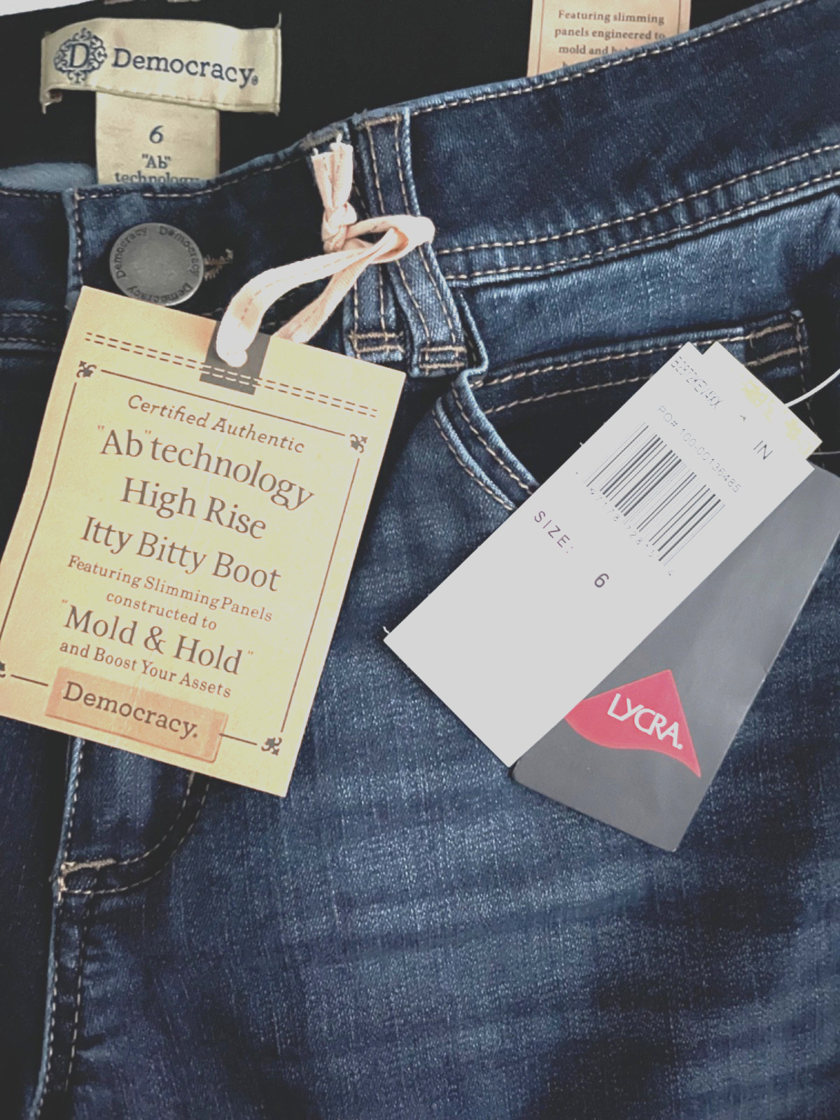 NEW w TAGS DEMOCRACY SIZE 6 HIGH RISE ITTY BITTY BOOT CUT BLUE DENIM JEANS MW