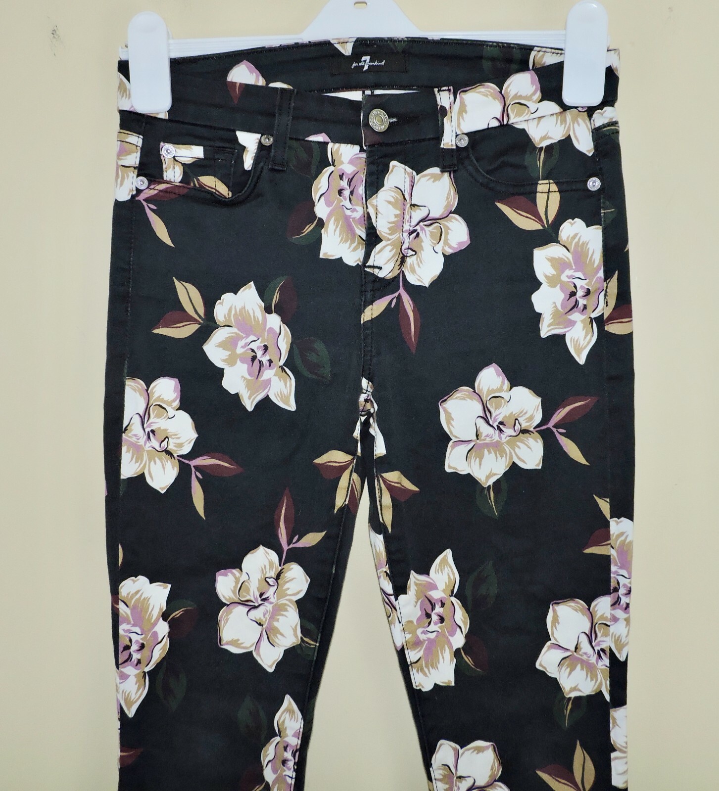 7 FOR ALL MANKIND Womens Sz 26 Nighttime Floral Print Cotton Skinny Jeans 7FAM