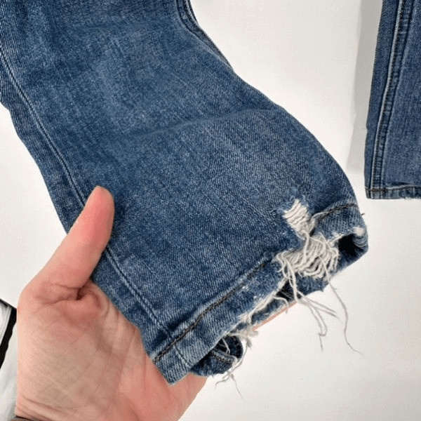 как выглядит Reformation Hepburn High Rise Jeans Skinny Jeans Distressed Rainier Blue Size 26 фото