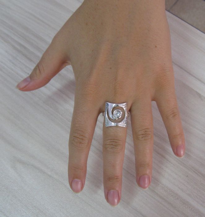 как выглядит Genuine Stylish Sterling Silver Ring Solid 925 Spiral Cubic Zirconia Handmade фото