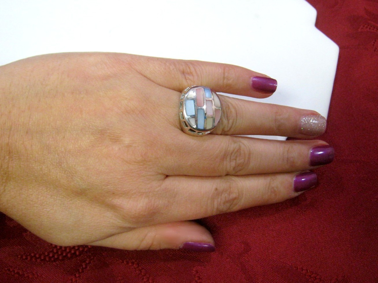 как выглядит 925 STERLING SILVER MULTI COLORED INLAY MOP MOTHER OF PEARL RING BAND SIZE 6 фото