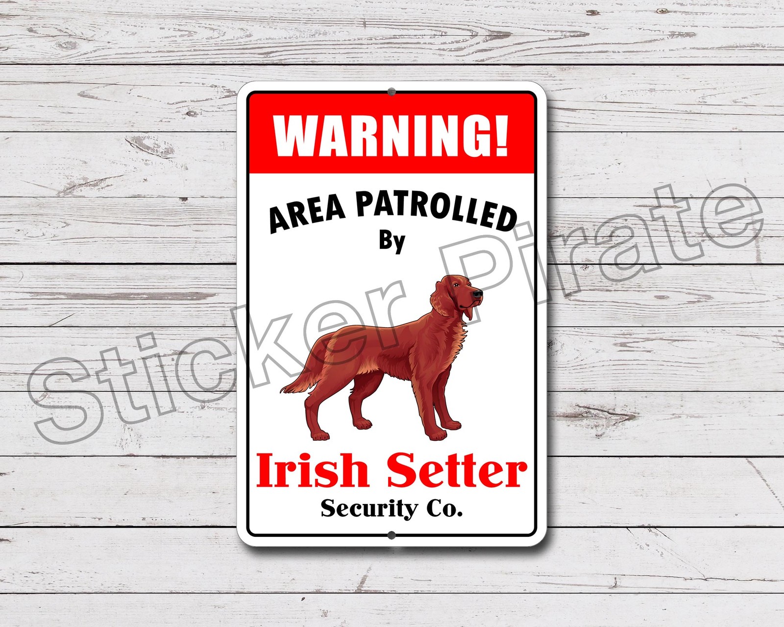 Aluminum Warning Area Patrolled By Irish Setter 8X12 Metal Novelty Sign