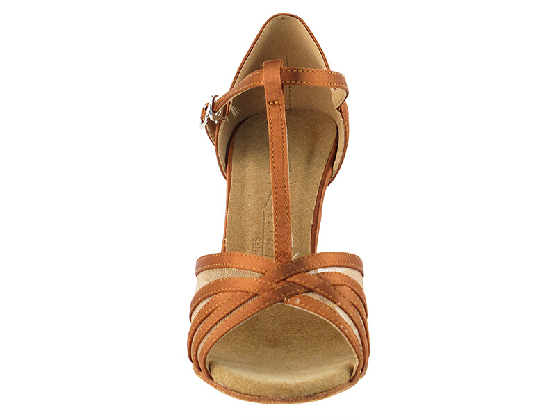 Women's 16612 Dark Tan Satin Swing Salsa Mambo Latin Dance Shoes heel 2.5 Size 7