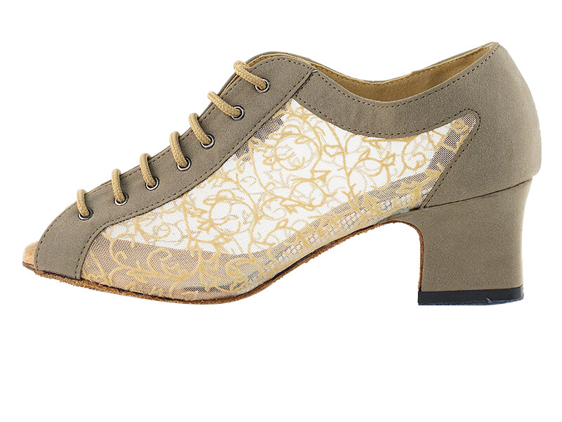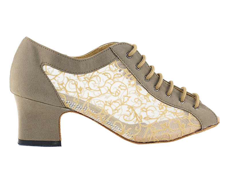 1643 Brown Nubuck Embroide Swing Ballroom Latin Dance Shoes low heel 2 Size 5