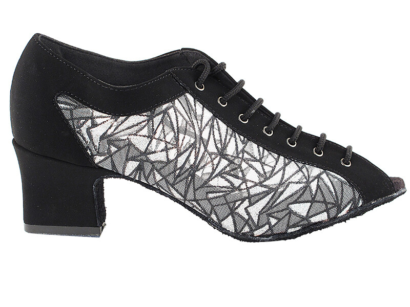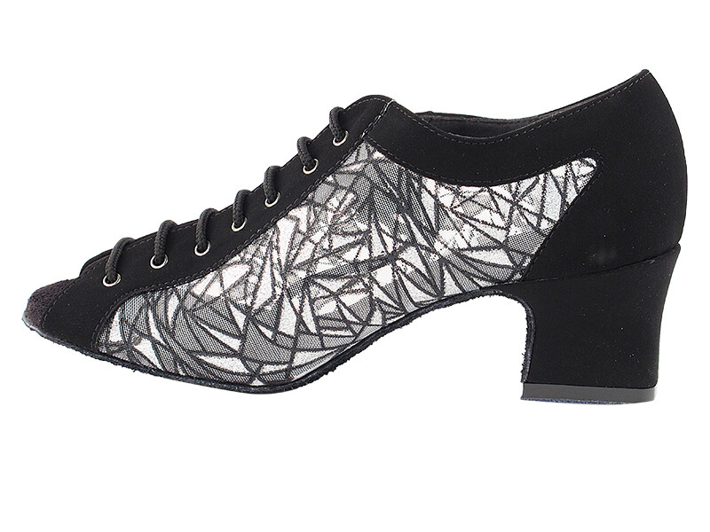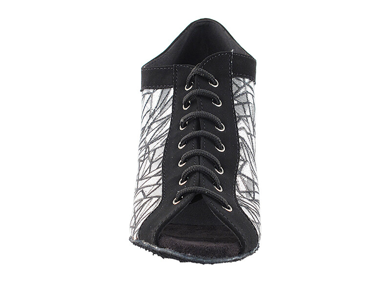 Women's West Coast Swing Salsa Dance Shoes Size 7 Heel 2 inch Black 51Mesh 1643