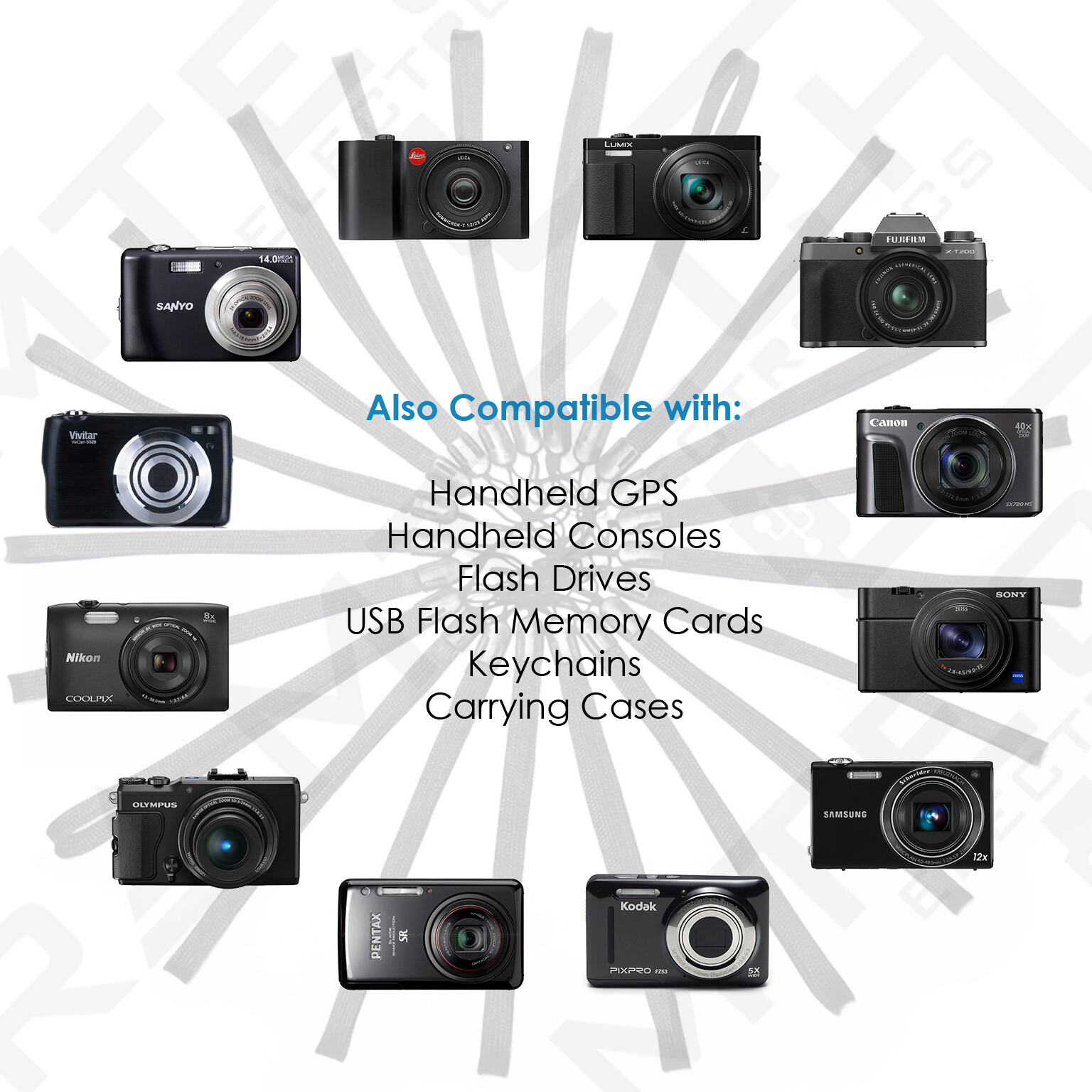 Подходит: Cellphones, Handheld GPS, Handheld devices, Flash drives, Carrying cases, USB flash memory cards, USB card readers, PSP. PS Vita, Wii Remote, DS Console, DS Lite Console, Camcorder, Camera