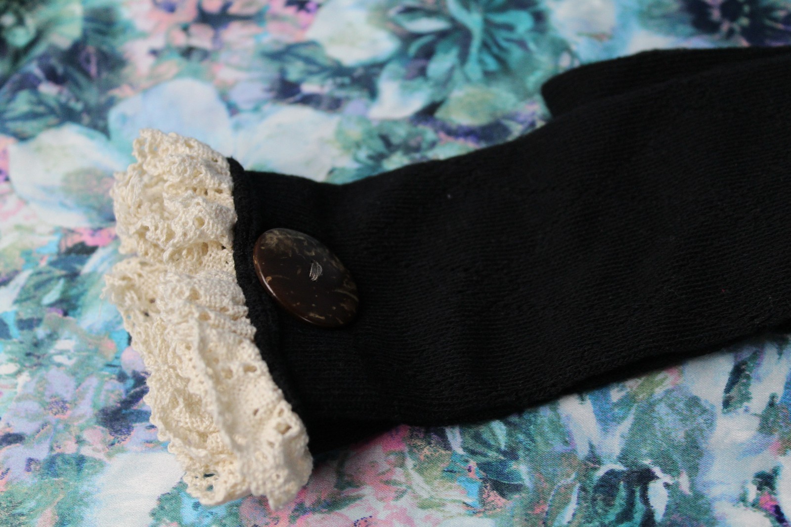 как выглядит Over the Knee Boot Socks Patterned with Button and Lace Accent фото