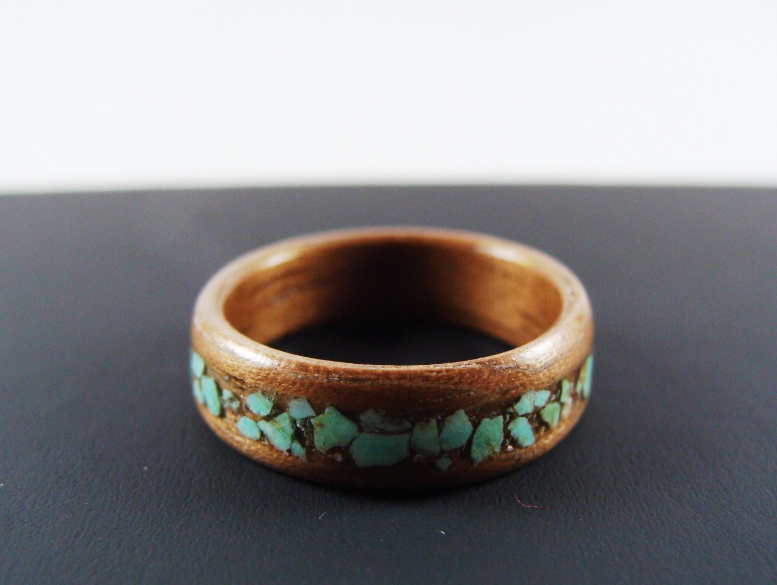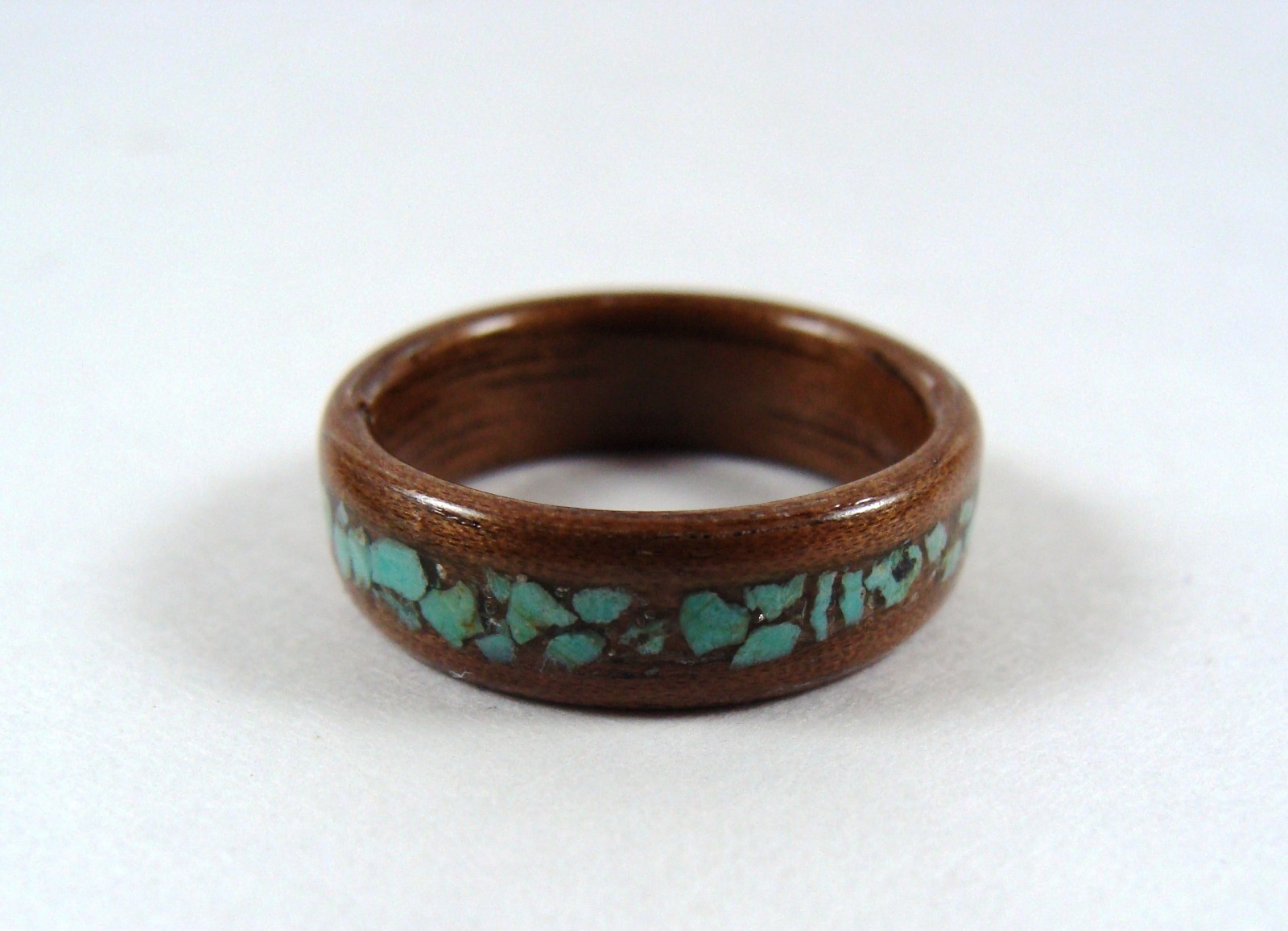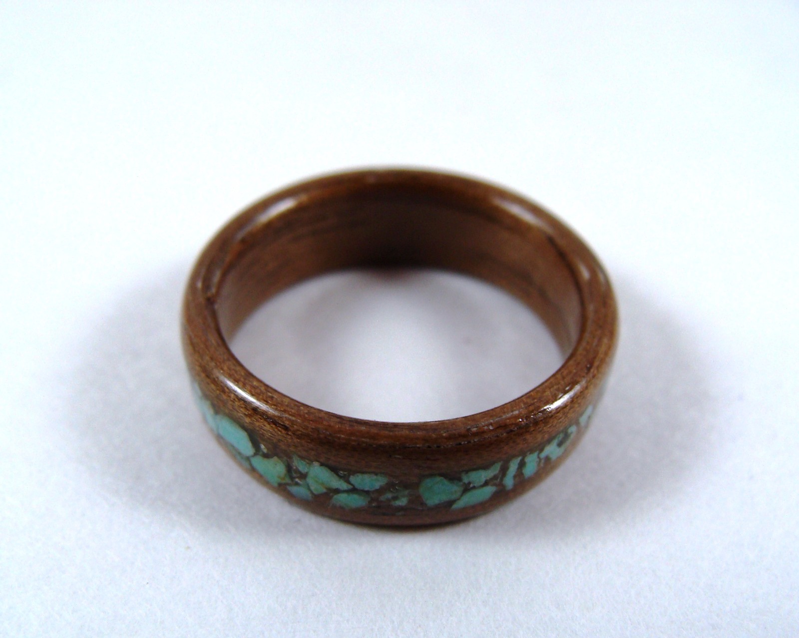 Walnut Bentwood Ring With Turquoise Inlay Mens or Womens Handmade To Order