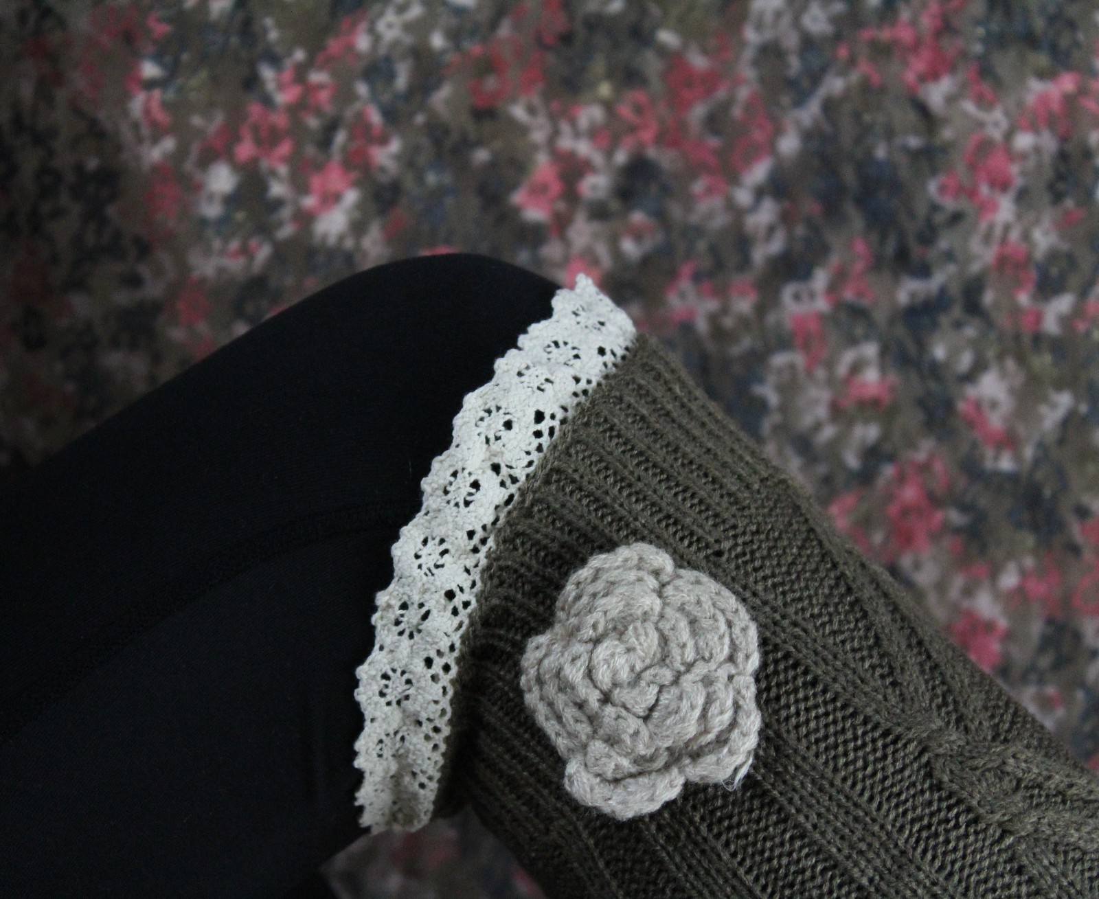 Lace Top Flower Leg Warmers Boot Toppers Cozy Cable Knit Floral Faux Socks