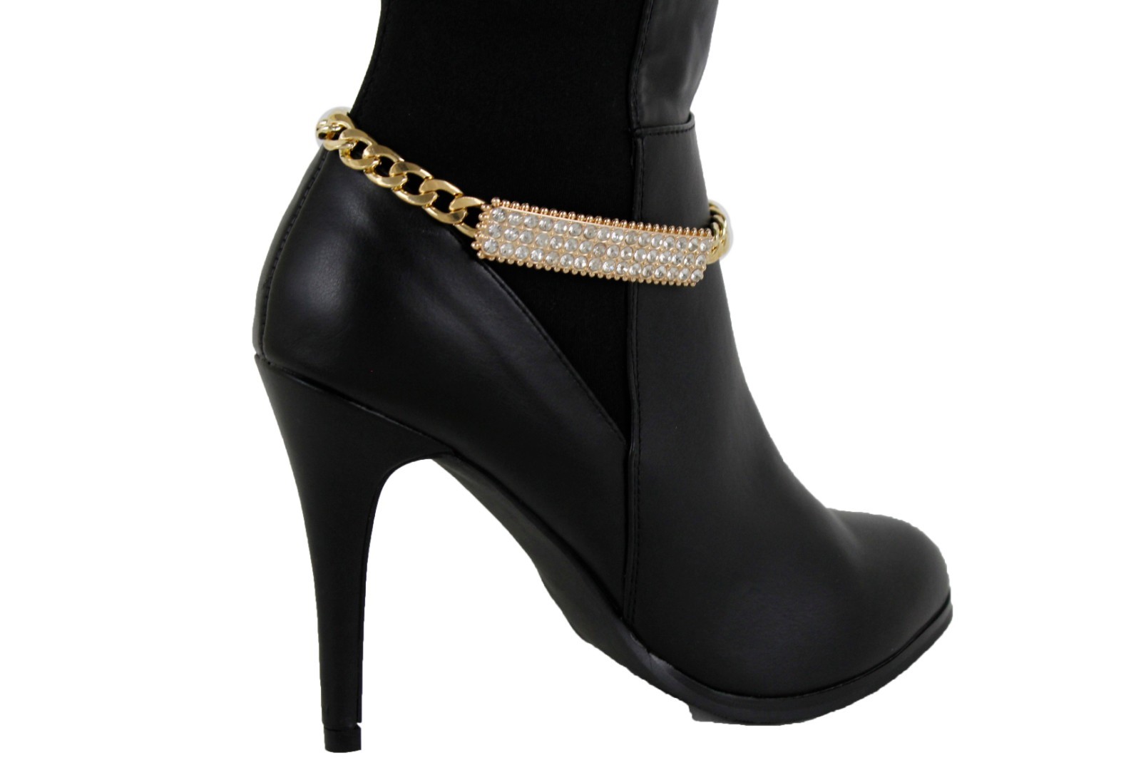 Women Gold Metal Chain Boot Bracelet Shoe Anklet Side Charm Bling Plate Strap