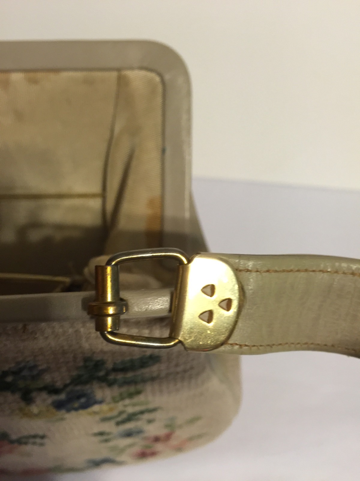 как выглядит Beautiful VTG Floral Tapestry Hand Bag Purse Leather Trim Brass Closure фото