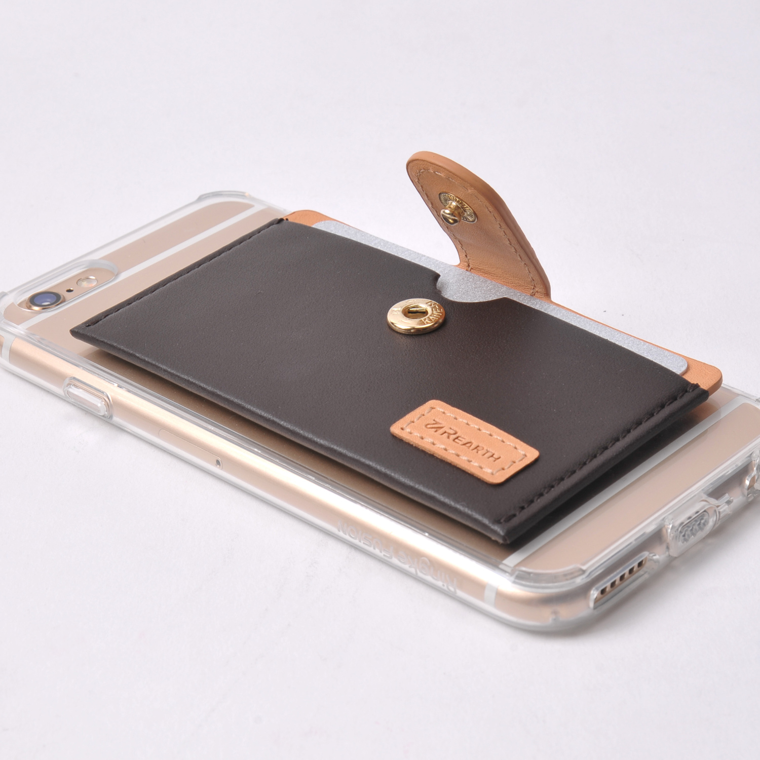 как выглядит Ringke Genuine Leather ID/Card Holder 3M Adhesive Sticker Attach Wallet - ORANGE фото