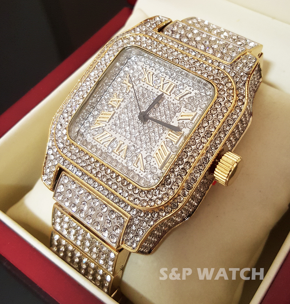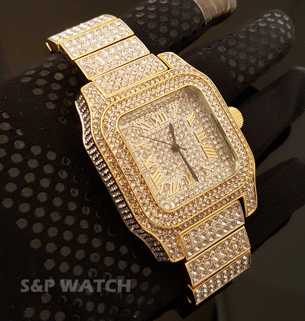 как выглядит Men Rick Ross Two Tone Full Iced Bling Hip Hop Lab Diamond Bust Down Watch фото