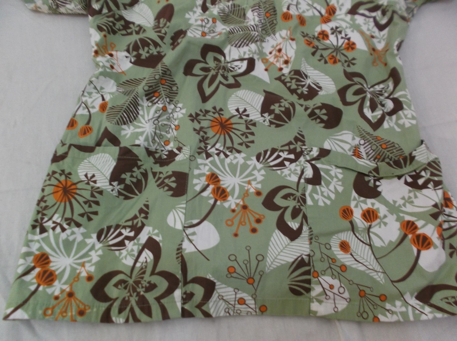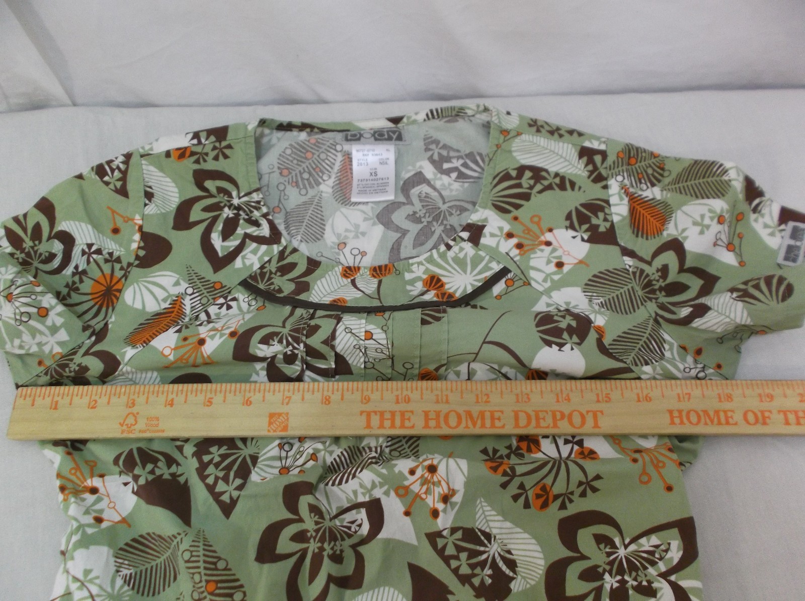 как выглядит Cherokee body Stretch Light Green Floral Leaf Print Scrub Top 6677 фото