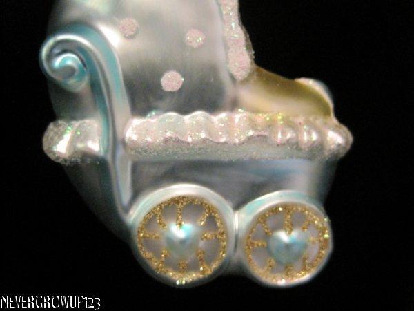 как выглядит 2016 BABYS 1ST CHRISTMAS BOY ORNAMENT BLOWN GLASS CARRIAGE STROLLER NWT фото