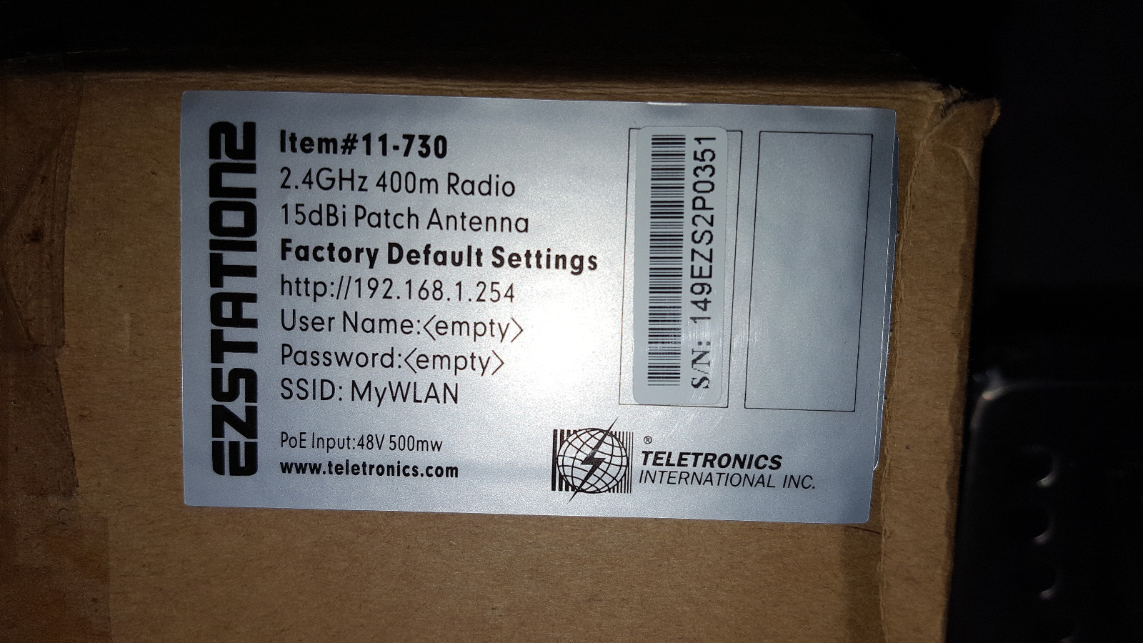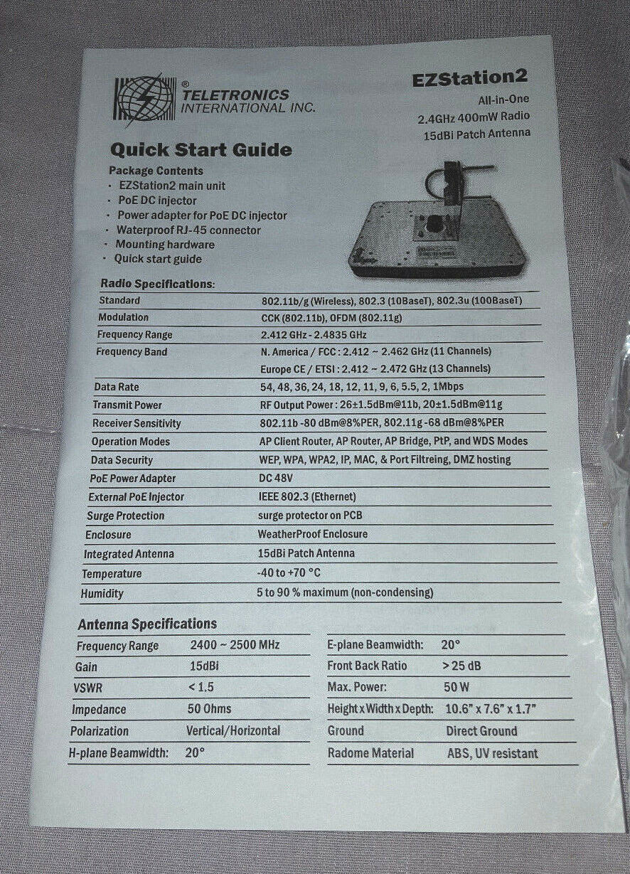 Teletronics EZStation2: All-in-One 2.4GHz 400mW Radio with 15dBi Patch Antenna
