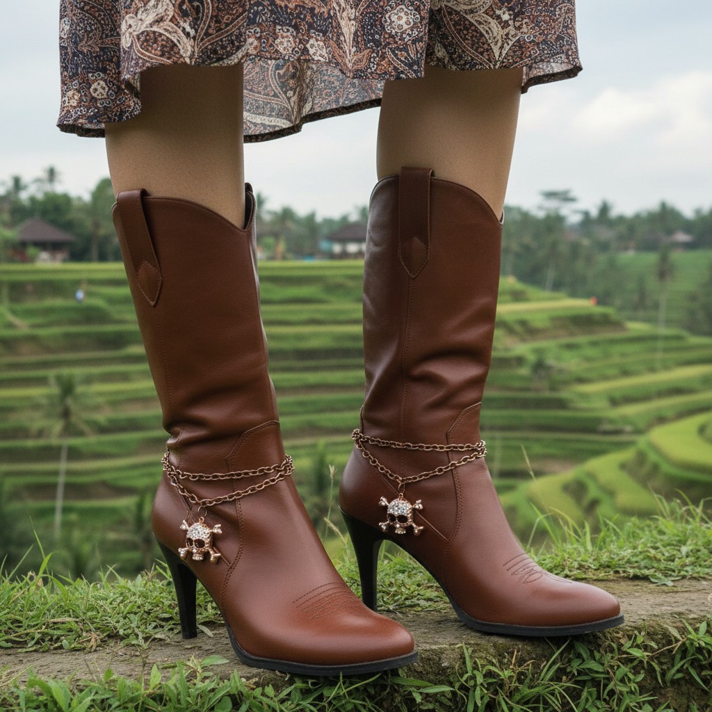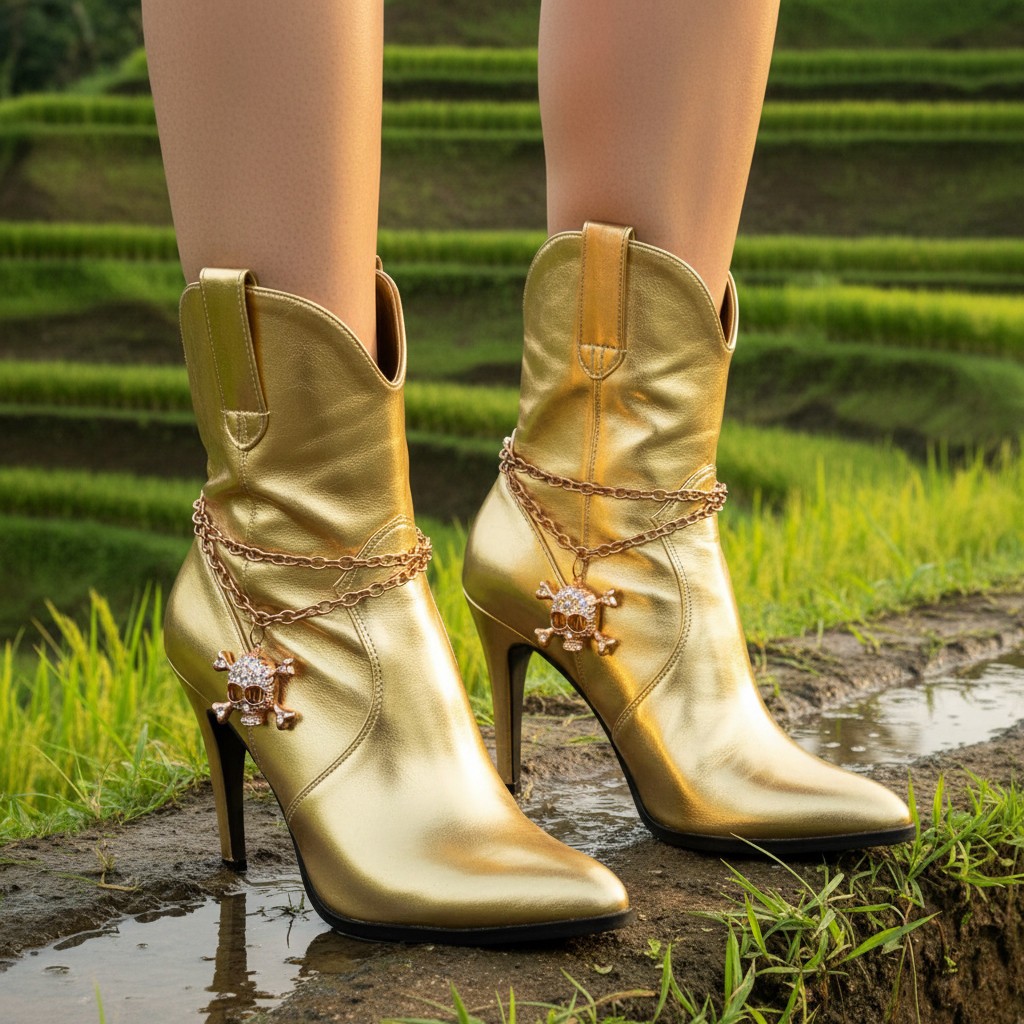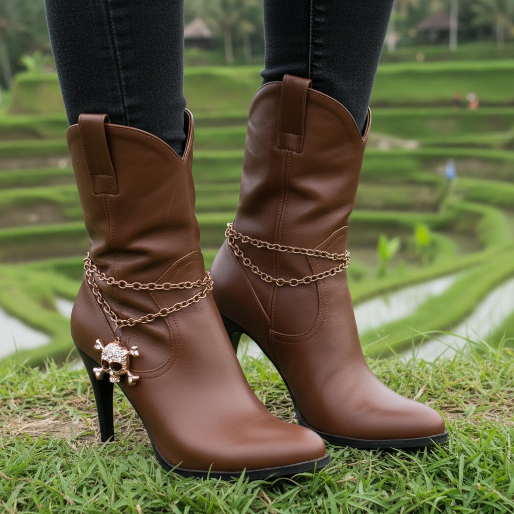 Women Rose Gold Metal Boot Chain Bracelet Shoe Skull Charm Bronze Color PAIR