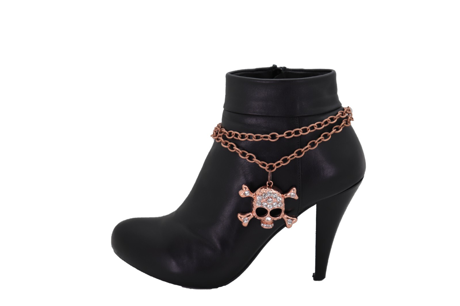 как выглядит Women Rose Gold Metal Boot Chain Bracelet Shoe Skull Charm Bronze Color PAIR фото