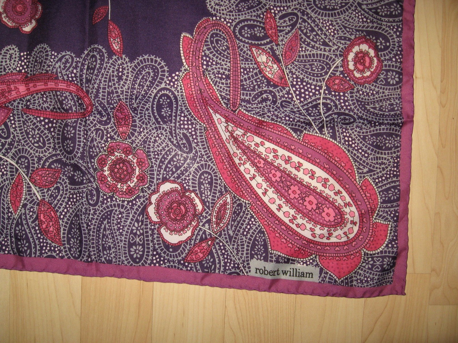 как выглядит Robert William Scarf - Vintage 1980s Purple Paisley Ankara Square 28" Mod Scarf фото