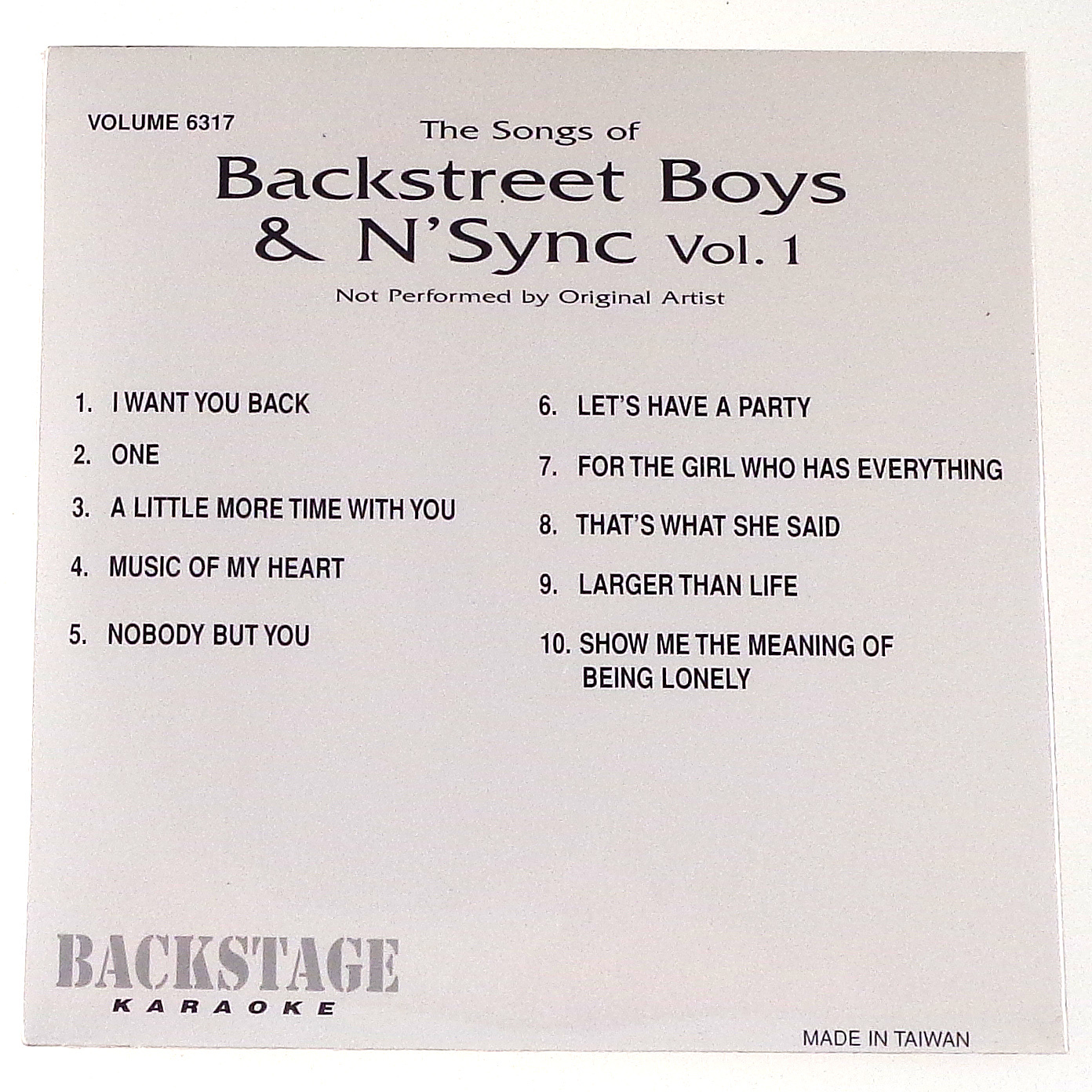 Backstage Karaoke BACKSTREET BOYS N'SYNC VOL. 1 9 Song Disk CD 6317