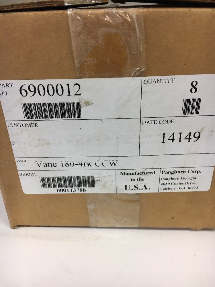 New Pangborn 6900012 Vanes 180-4rk CCW Set Of 8 Warranty Fast Shipping