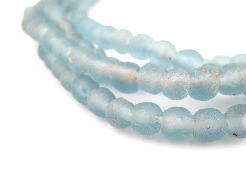 Light Blue Recycled Glass Beads 7mm Ghana African Sea Glass Round 24 Inch Strand
